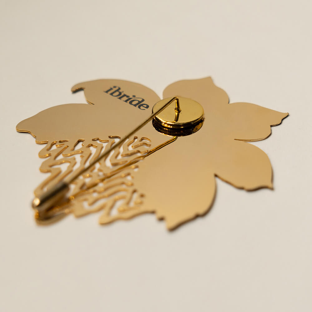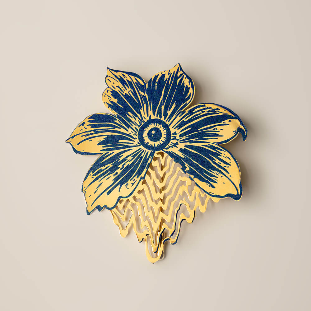 Hope is a gold-plated brass brooch with a pin that can be worn on a jacket, scarf, hat or piece of clothing. This flower brooch by artist Aurel Rubbish is a true artistic statement. This subtly elegant jewel evokes the balance between the power and fragility of nature.