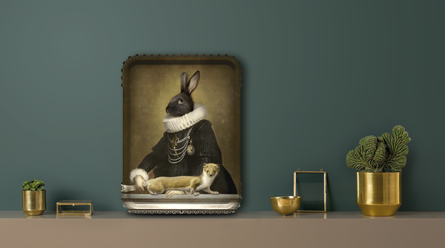 Large trays to be used to serve the guests, they can then be displayed freely on a wall as a pictorial work, a mythological painting