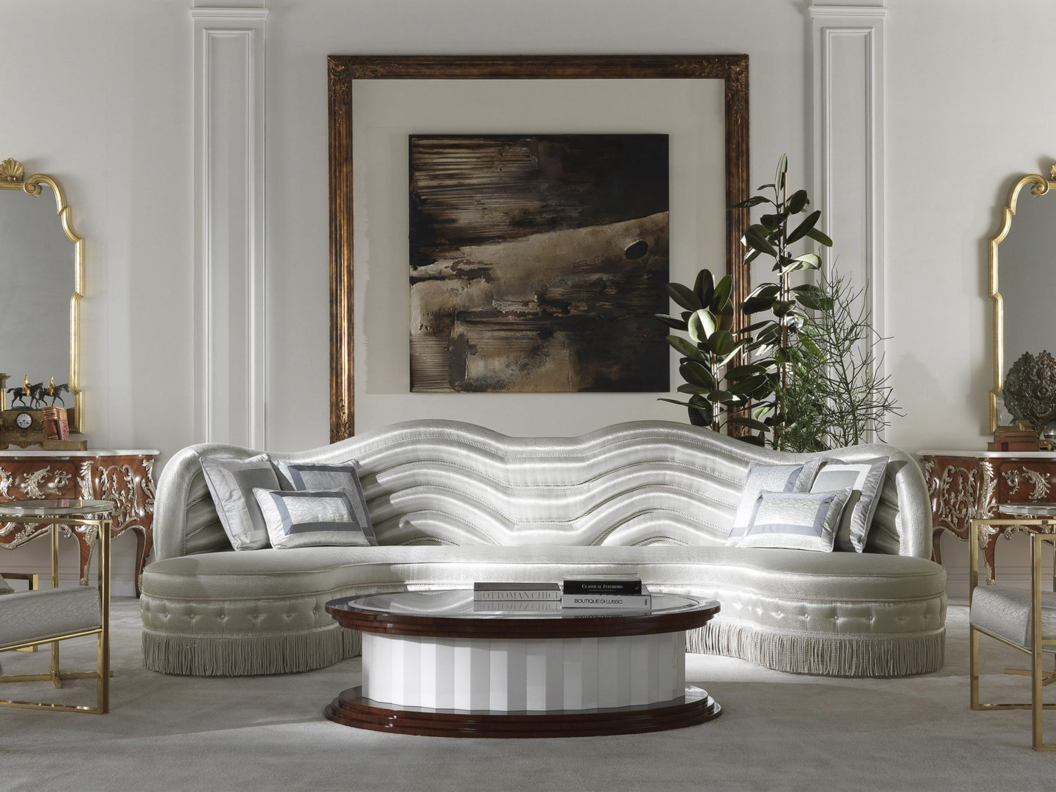 STRUCTURE IN BEECHWOOD. PADDING IN FOAM. UPHOLSTERY IN FABRIC WITH HORIZONTAL BANDS.