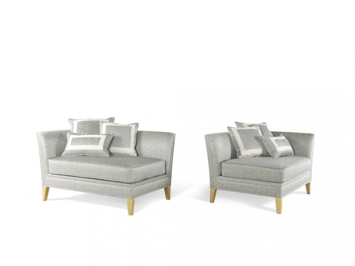 SOFA WITH STRUCTURE IN BEECHWOOD. PADDING IN FOAM. UPHOLSTERY IN FABRIC. FEET WITH PATINATED ANTIQUE GOLD FINISHING.