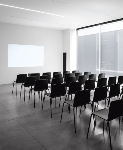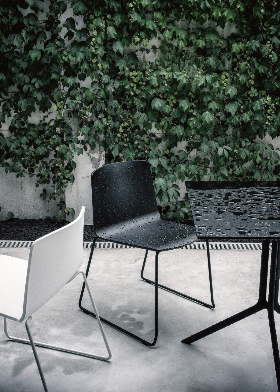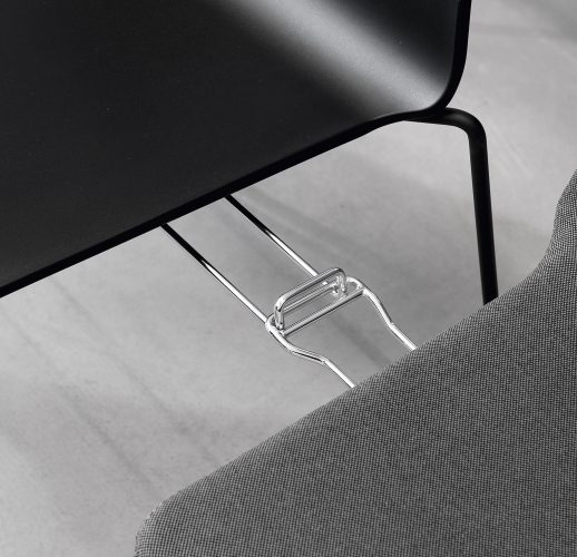 A stackable chair with a distinct and