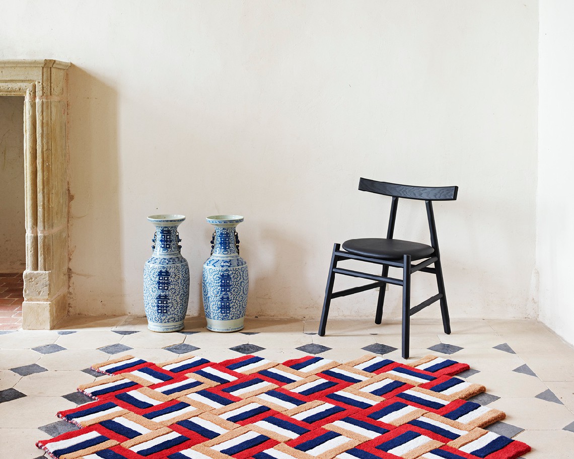 Cross is an innovative rug system with intertwinted graphic lines. Inspired by the sailors knots, with a giant crossing of colorful stripes, it is made of different square units which layout and number will determinate the size and shape of the rug.