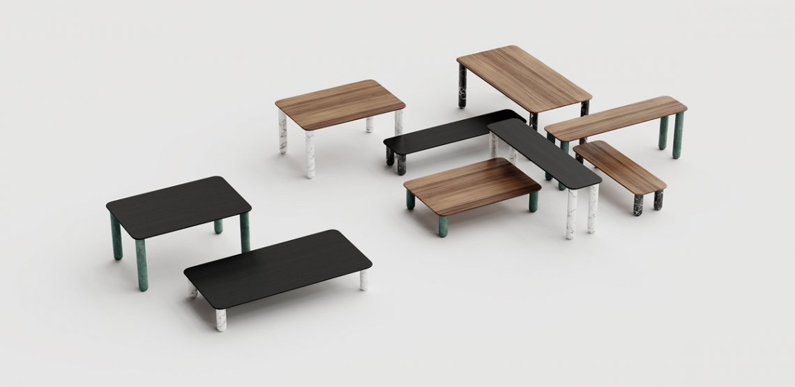 Sunday is a family of coffee tables and low consoles with a simple and clean design vocabulary. The combination of heavy marble legs with the thin solid wood or marble top creates an interesting contrast while the rounded edges and generous proportions provide a comforting feeling.