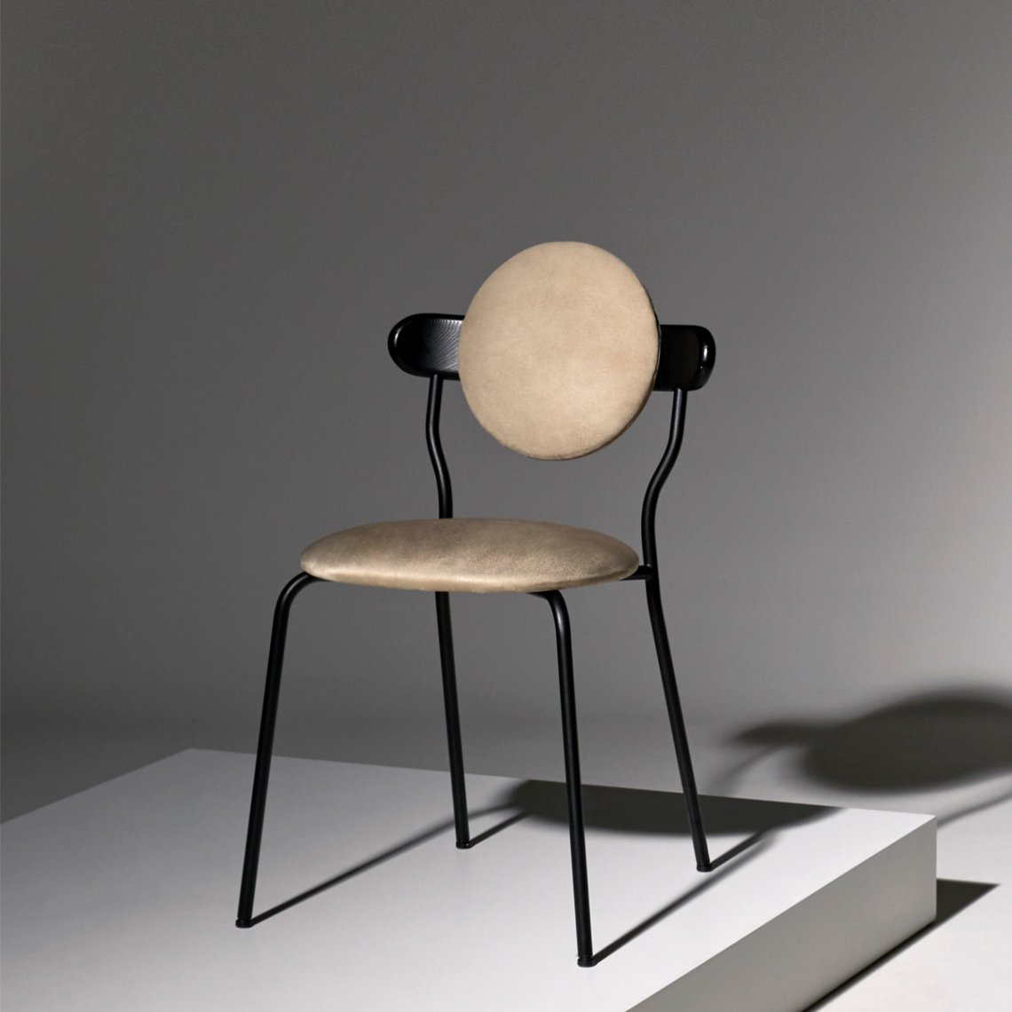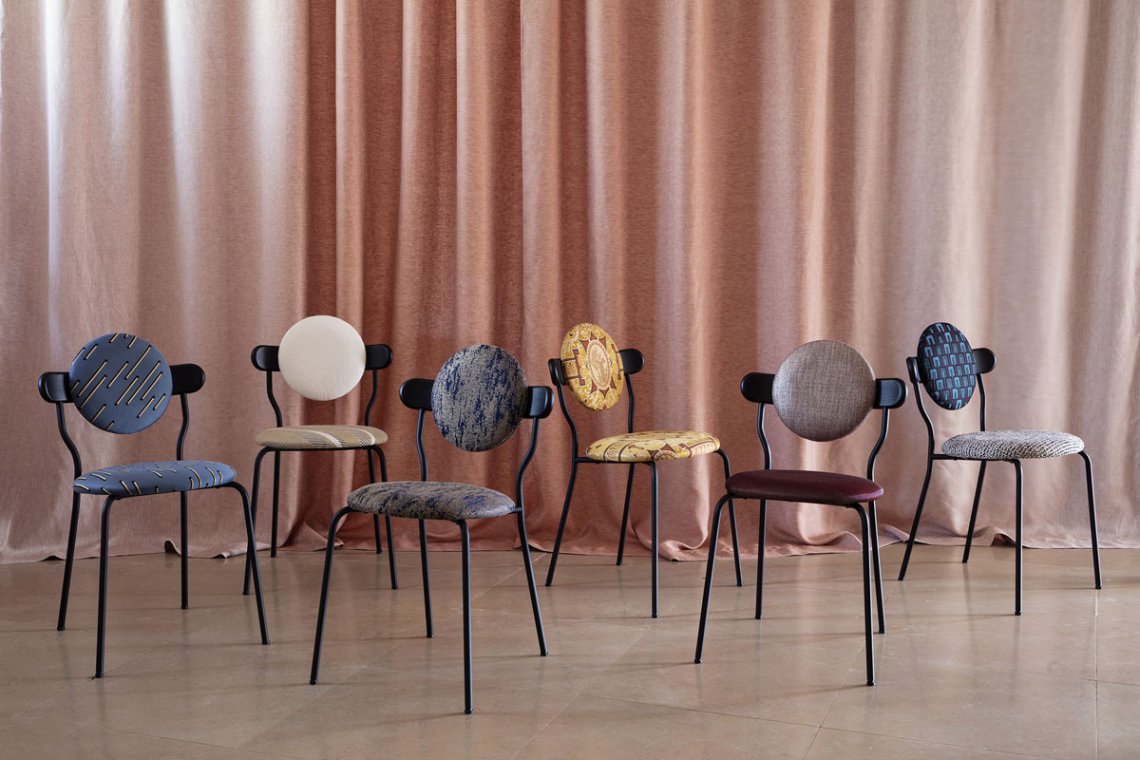Planet is an upholstered chair inspired by the distinctive silhouette of planet Saturn. The upholstered seat and back ensures a high level of comfort, but Planet chair remains a featherweight at only six kilos for practical use every day.