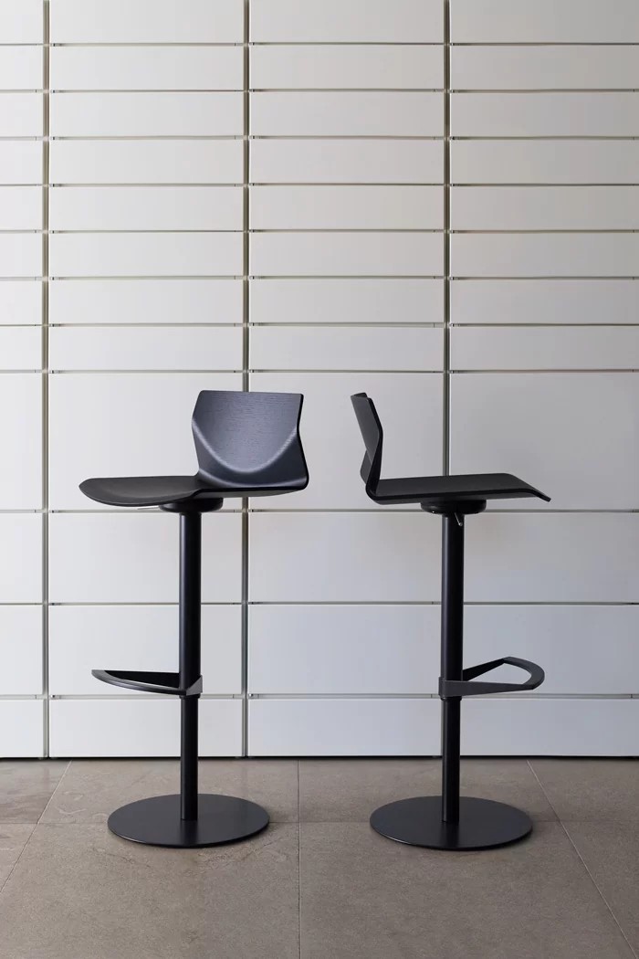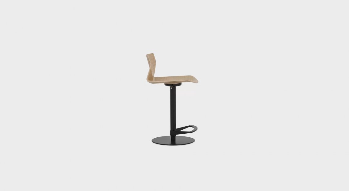 Quando la tradizione artigianale italiana incontra il gusto nipponico, il risultato è KAI, sgabello regolabile in altezza con seduta girevole in legno leggermente ricurvo, elegante e confortevole.