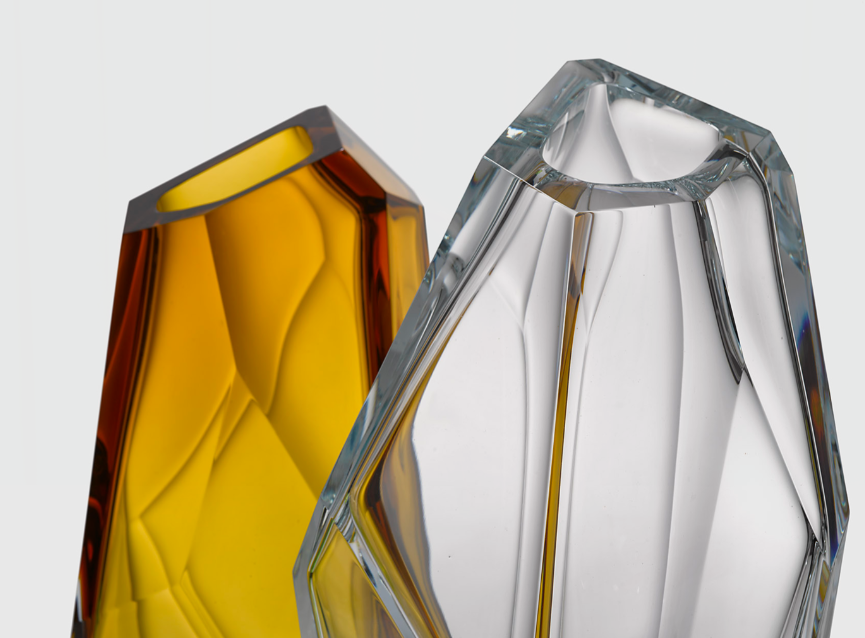 Following the success of his Crystal Rock pendant lights, LASVIT has extended this versatile design line with its vases. Certainly not from the Stone Age, but closer to the fictional Kryptonite, Crystal Rock appears in the cave of the future as an ambassador to the fusion of nature and man, light and reflection, transparency and mass. All these characteristics are gathered within a contemporary silex that interacts between light and darkness.