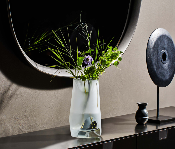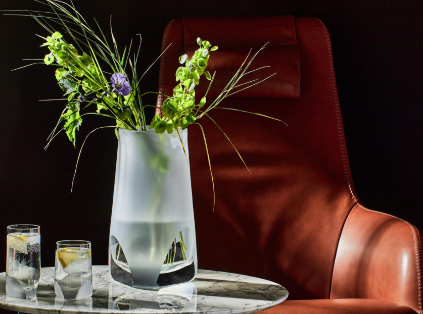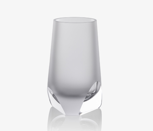 Glissade is authored by world-renowned designers Yabu Pushelberg. Suitably named Glissade, the collection’s design is informed by snow-covered mountains and the powerful, yet graceful descension down their slopes. The impressions on the glassware are created by distinct cuts, while the frosted effect is achieved through sandblasting. Intersecting these two techniques into the glass allows light to permeate and refract through each delicate angle. The viewer feels the finesse of the layers, as if they were, too, sliding through snowy terrain. The collection offers various glasses, a bowl and vases – all crafted with an unparalleled precision that uplifts onlookers to a place of harmony and completeness.