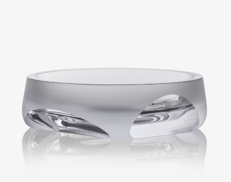Glissade is authored by world-renowned designers Yabu Pushelberg. Suitably named Glissade, the collection’s design is informed by snow-covered mountains and the powerful, yet graceful descension down their slopes. The impressions on the glassware are created by distinct cuts, while the frosted effect is achieved through sandblasting. Intersecting these two techniques into the glass allows light to permeate and refract through each delicate angle. The viewer feels the finesse of the layers, as if they were, too, sliding through snowy terrain. The collection offers various glasses, a bowl and vases – all crafted with an unparalleled precision that uplifts onlookers to a place of harmony and completeness.