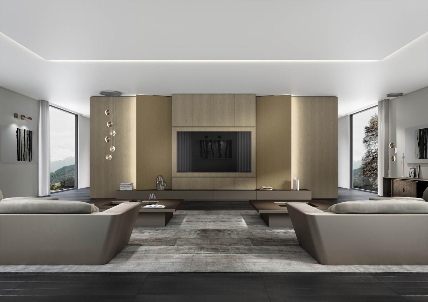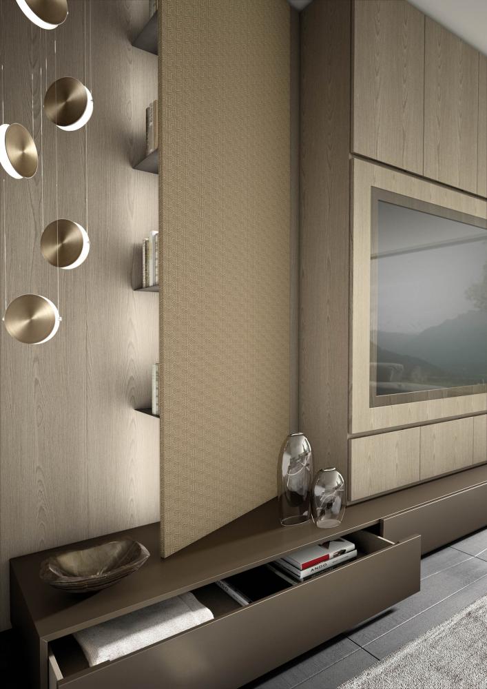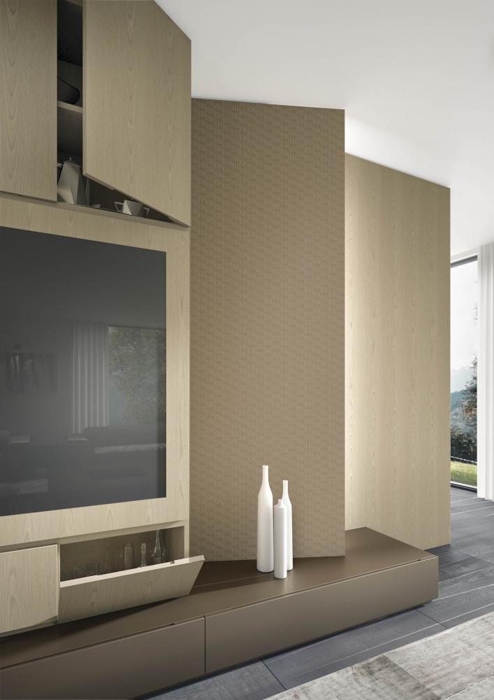 The pure smooth wood furnishes and decorates every living area with taste and refinement. Open compartments, hidden LED lighting, drawers and shelves complete each proposal to guarantee our customers a unique and exclusive product.