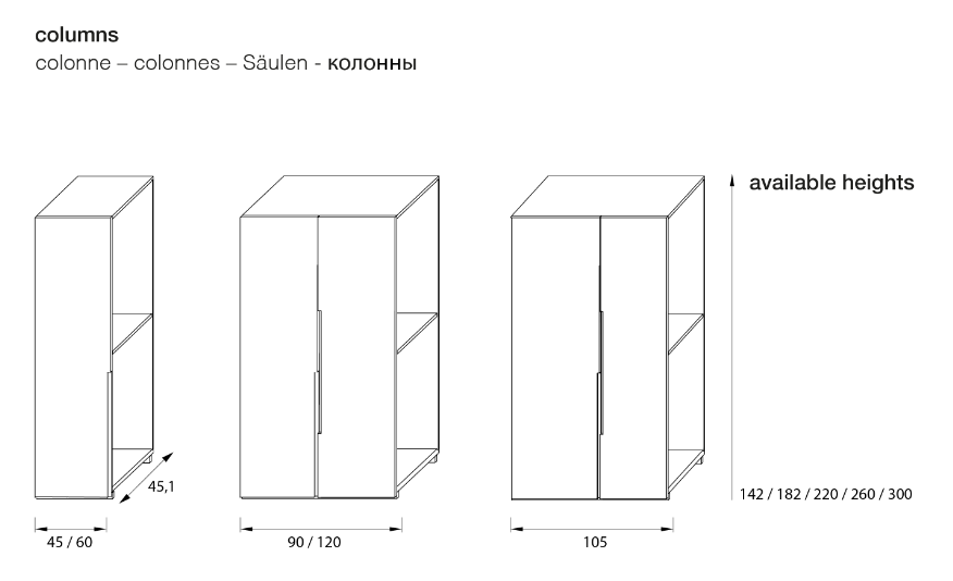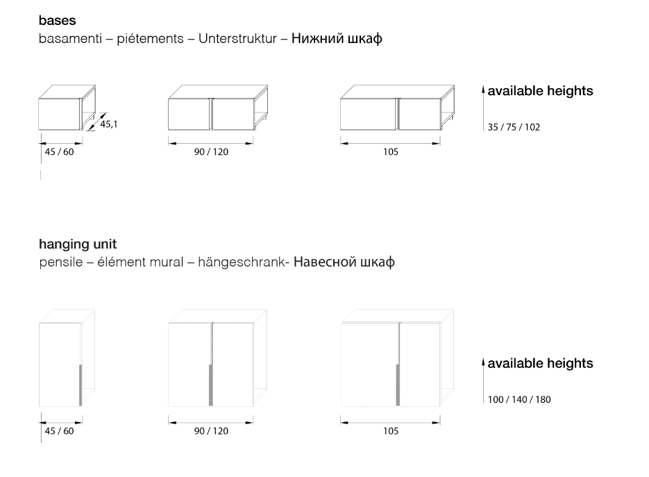 Cabinet system in smooth natural wood available in modules of different sizes, in all the wood finishes of the collection and in aniline-stained oak in all RAL colours. The system is available with horizontal and vertical grain.
