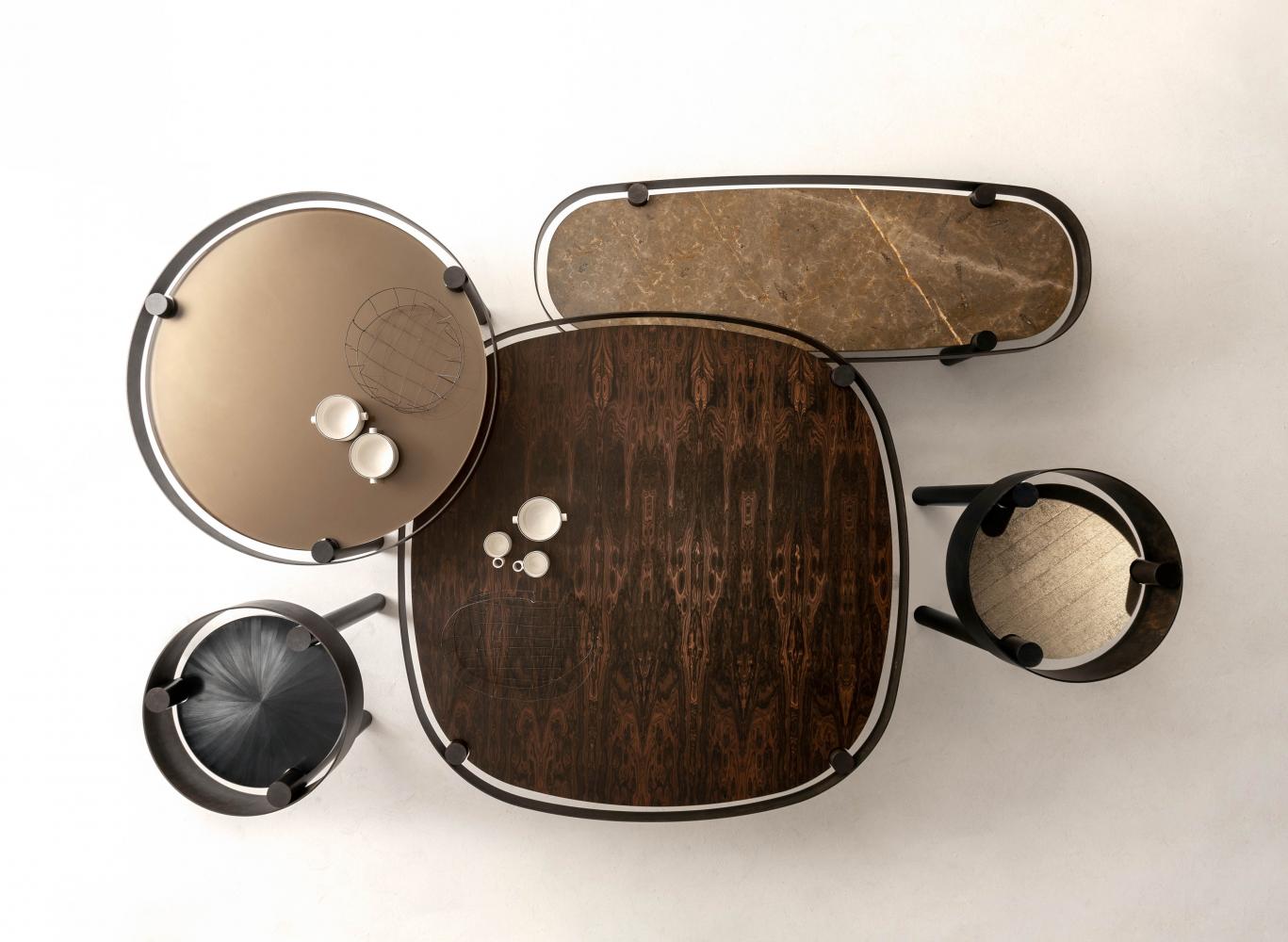 The Tray coffee tables, with a modern and creative design, are designed to create magnificent multiple compositions of juxtaposition and overlapping.