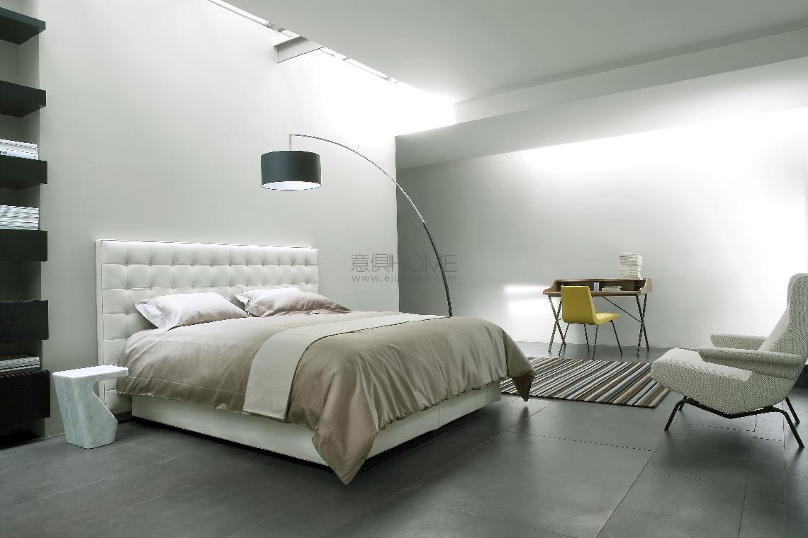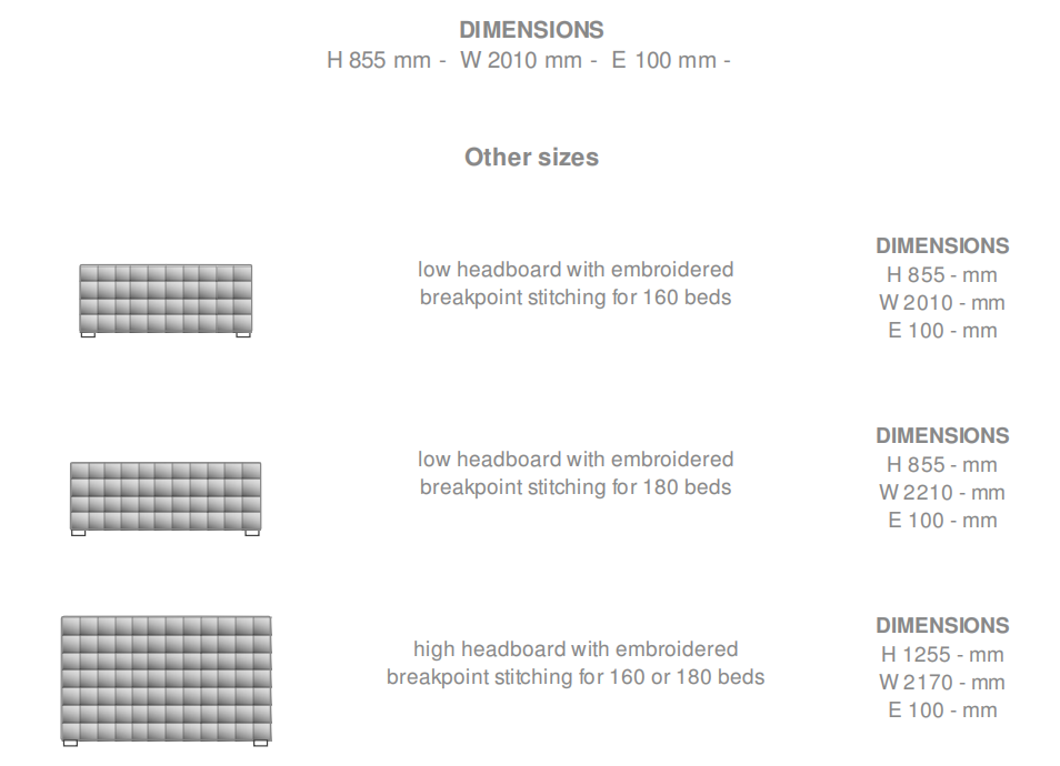 Drawing inspiration from the high-end hotel market, the bed and headboard were designed to inspire a sentiment of generous comfort and welcoming softness. The high headboard reaches 128 cm from the floor, and is available in a choice of 2 widths (216 & 286 cm) to enable all types of bedside table to be accommodated with ease. For smaller spaces, a lower (H 88 cm), narrower (200 & 220 cm) version is also on offer. As for the bed (160 x 200 or 180 x 200), this comprises an upholstered base, a thick mattress (preferably sprung) and a mattress topper: the elevated, 'anglo-saxon-style' sleep platform which results will satisfy the most exacting requirements in respect of comfort.