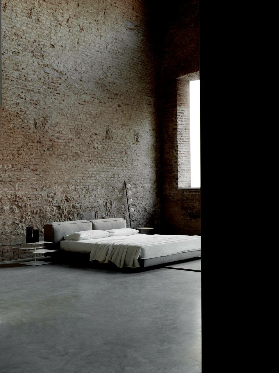 Double bed with headboard structure in multilayer poplar and double-paneled fir-wood; padding in polyurethane foam and acrylic fiber layers, covered in 100% polyether thermally bonded onto a polyamide velveteen backing. Headrest, inset in the headboard structure, in multilayer padded in differentiated density polyurethane foam with “capitonné” detail and non-removable leather or fabric upholstery. Bedstead chassis, in 70x20mm tubular steel with black epoxy powder coating, made of two separate parts connected by plates and secured with screws. Bedstead structure, screwed on the chassis, in multilayer padded in polyurethane foam and covered in 100% polyether thermally bonded onto a polyamide velveteen backing. Feet, inset in specific bushing welded to the chassis then secured with screws, in drawn-steel square section 15x15mm with bronzed epoxy powder coating and adjustable black PVC tips. Headboard and bedstead structure with fabric or leather upholstery, both fully removable by Velcro fastening. All perimeter stitching are enhanced with edgings in Grosgrain for the fabric version, and braided leather trim, always in the same finish, for the leather one. Fabric cover to protect the slat base, in 100% cotton col. Ecru, fixed to the slat frame with Velcro fastening. Also available in American standard Queen and King size.