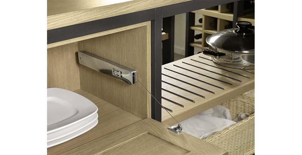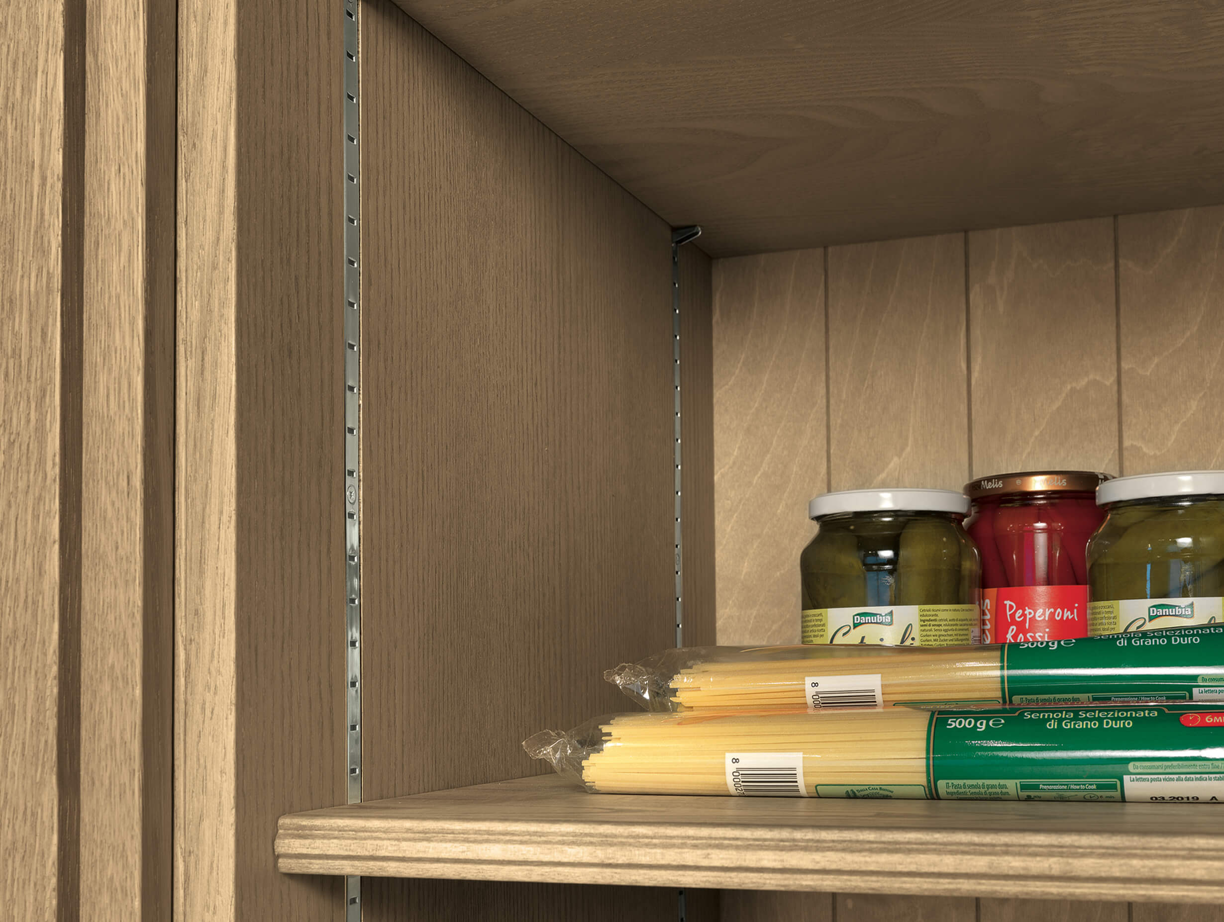 Small equipment represent a great help to arrange space in the kitchen: steel grilles and special supports allow the adjustment of shelves inside cabinets and tall units.