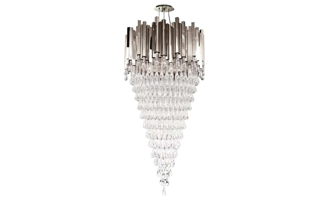 Trump Chandelier is a large gold crystal chandelier was sculpted to convey a similar aesthetic of its lineage. On top, connected gold-plated brass structures serve as the main base for an opulent crystal glass masterpiece placed underneath. Each one of these sublime glass tears was designed with high attention to detail and traditional craftsmanship techniques. The perfect luxury chandelier for a refined ambiance.