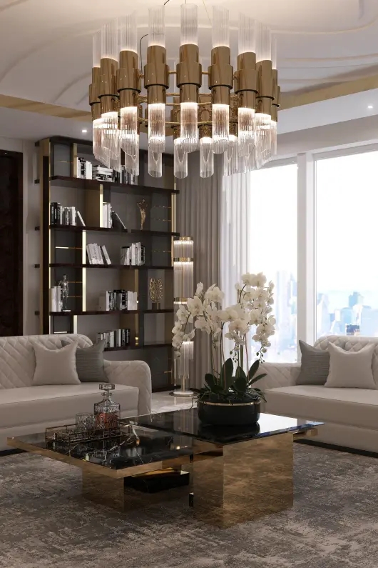 Drawing inspiration from the most unusual planetarium in the world, the Tycho Chandelier is a layered lighting fixture made of high-quality brass rings and crystal glass tubes. Highly decorative and elegant, the Tycho fits perfectly into modern lounges and dining areas.