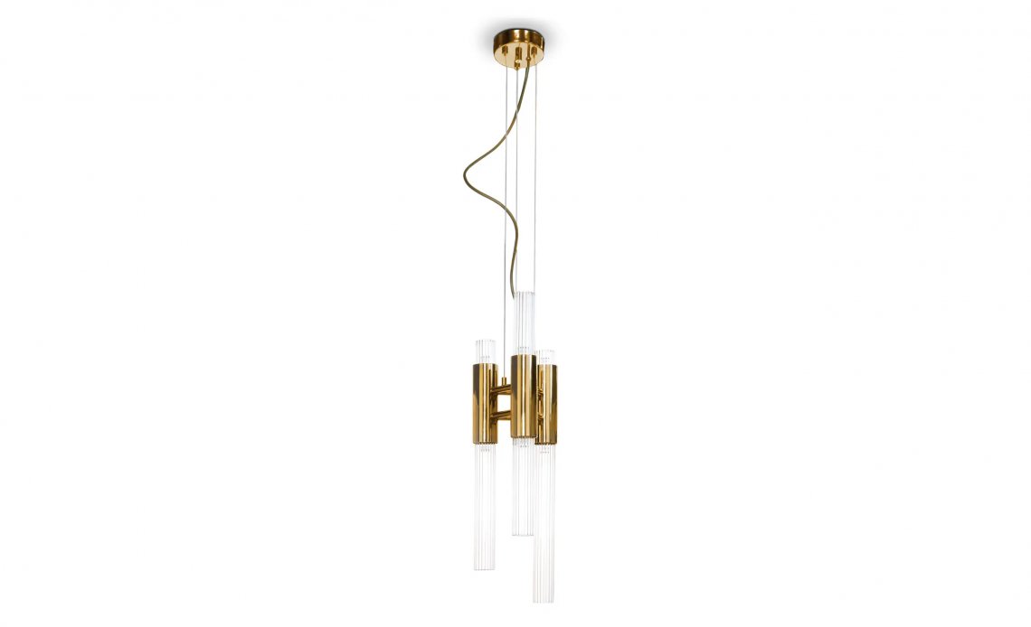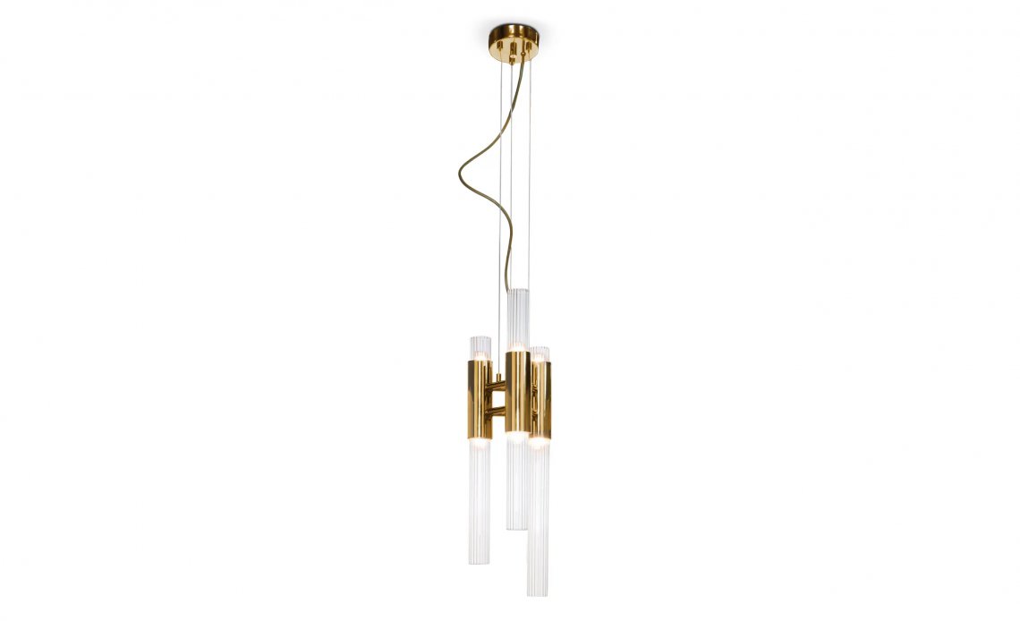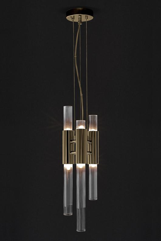 Waterfall Chandelier is made with the best handmade techniques, high-quality materials as gold-plated brass. A luxury chandelier with smooth and elegant shapes of the ribbed fine tubes of crystal glass and the extraordinary circular levels sensations of waterfalls shows the exquisite capacity of this masterpiece to fill a contemporary loft as well as a luxury lobby.
