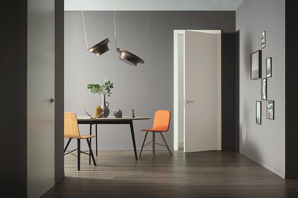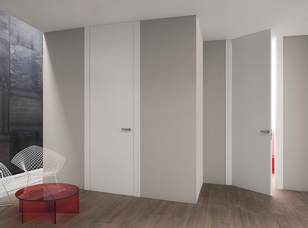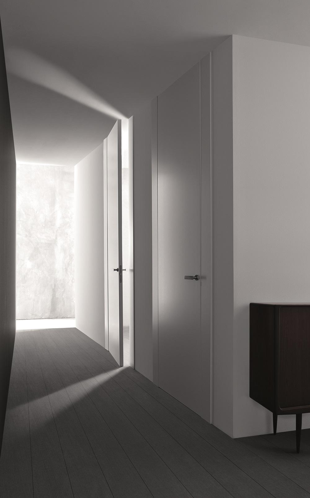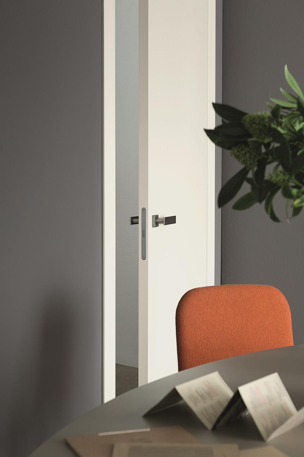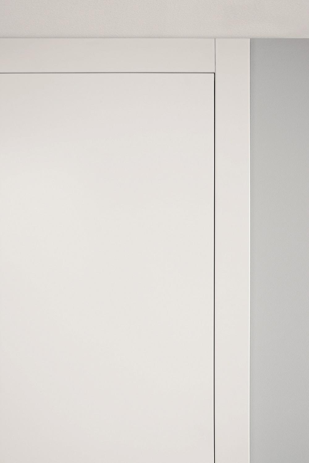 An historic model that has evolved both technically and aesthetically. The reversible door, the concealed hinge and the adjustable door jamb which adapts to a variety of wall thicknesses, all allow more flexibility in the range of uses. The planarity of the jamb with the door gives elegance and refinement to the wall. The revised proportions of the frame and the new finishes lend a contemporary note to the classical line.
