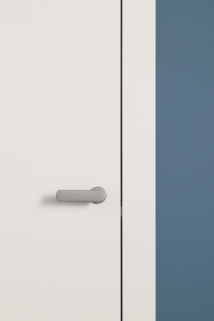 With the frame and walls perfectly flush, the slim line blends with the purity of the surfaces. The reversed edge and the opening to the interior confer an stylish effect of continuity with the sides of the corridor. Available in the new elegant finishes, it is versatile and adapts to solid wall, plasterboard and moveable wall systems.