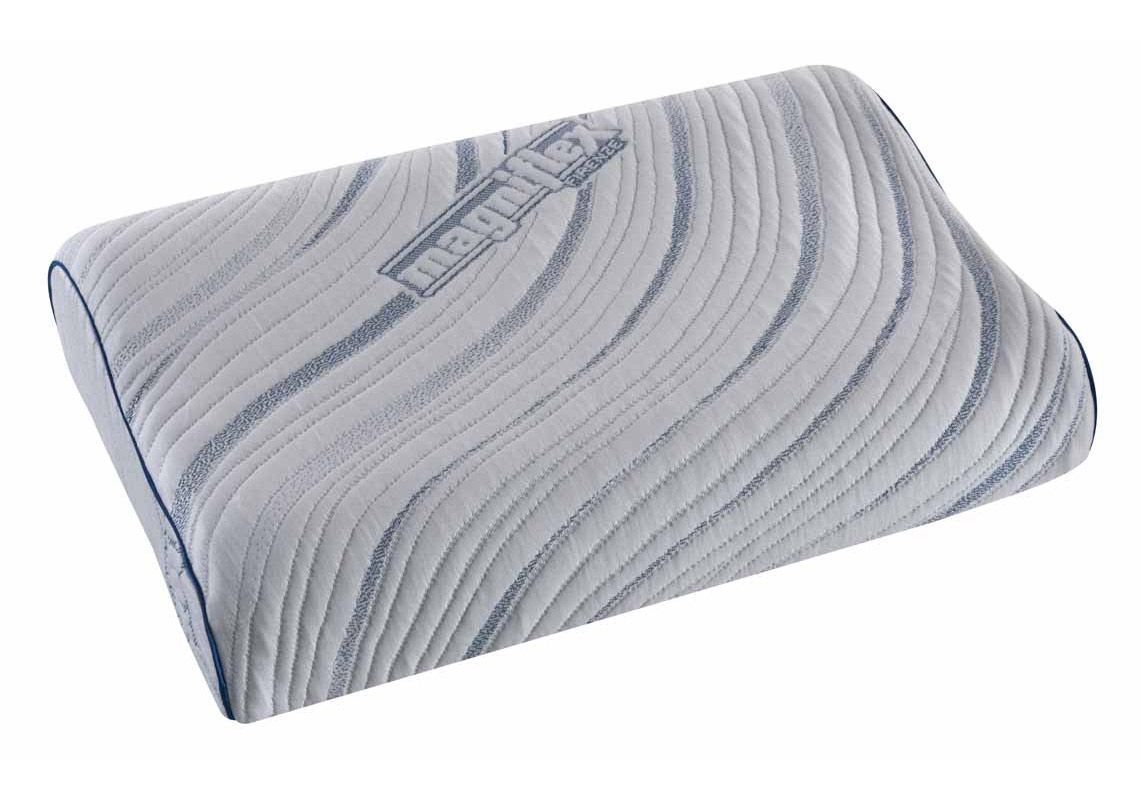 New Magnigel Deluxe Wave of the Magnigel line is an ergonomically shaped pillow with asymmetric double wave that supports the neck and relaxes the tendons. The interior made of innovative Magnigel and the Viscose cover are sure to always provide a fresh support. Its elegant blue finish adds a touch of class to the pillow, making it even more refined.