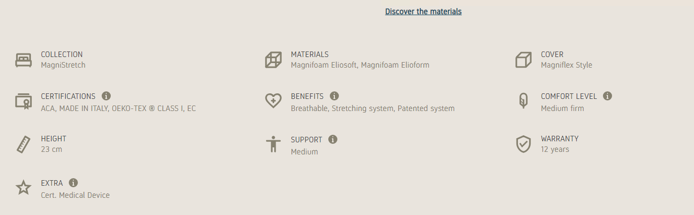The technological and innovative mattress that guarantees outstanding benefits for your spine, thanks to the stretching and decompressing action while you sleep. A mattress that is comfortable, breathable, anti-static and that regulates the temperature, providing a medium support in 23 cm of height