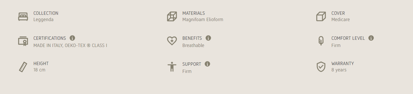 Notte Evo, thanks to its exclusive cover in Medicare fabric, guarantees a high level of hygiene and antibacterial treatment. The layer in Elioform provides the right support for your spine without causing compression for the ideal type of comfort.