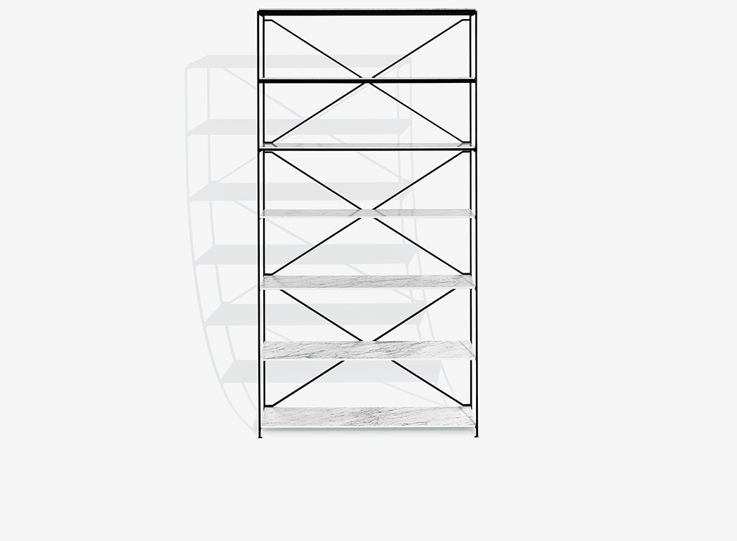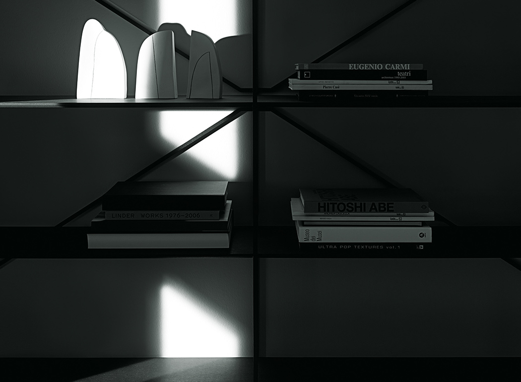 An ultra-flexible modular system with clean lines that helps organising storage spaces by drawing a geometric layout ideal for both domestic and professional spaces. The minimal modules blend in harmoniously attention to industrial, yet precious materials and rigorous design functionality.