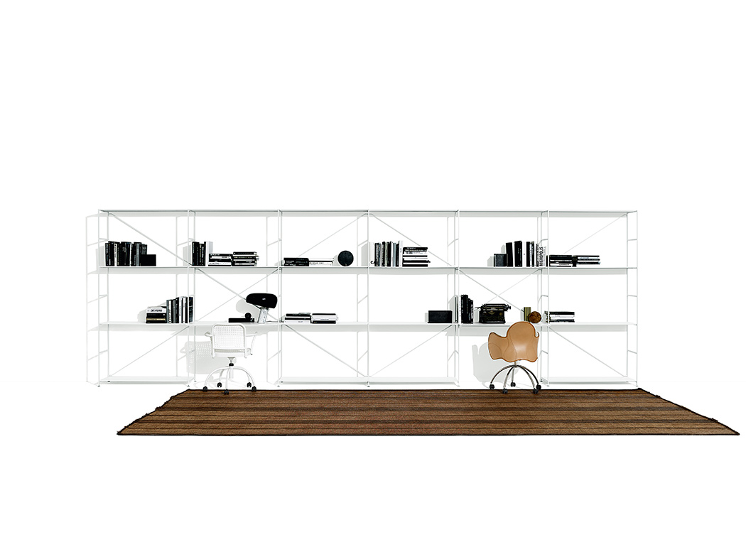 The R.I.G. Modules shelving system is designed from the idea of joining simple principles; optimized use of materials, enhanced functionality and a minimalist expression. Only a handful of components, that connects in numerous ways, all attached by using the universal screw; “R.I.G. joint”, creates this diverse shelving system. An uncompromised choice of materials and the graphic stabilizing system ensures a stunning stability.