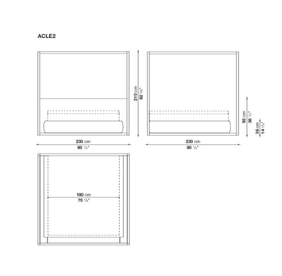 Alcova is the classical canopy bed in a modern interpretation, suitable to be positioned mid-room; bed sides and headboard in leather or fabric. The bed rests on a platform which is large enough to position a service element with an open compartment at the foot of the bed.