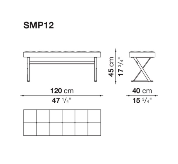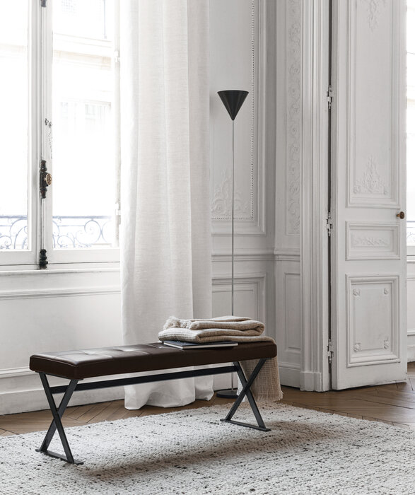 The Pathos bench, with a quilted leather or fabric cover, is available in two sizes. Ideal in the dining room, it is also a handy additional seat or top in the living room and bedroom. Stylistically, it echoes the iconic X-shaped metal frame characterising the entire Pathos collection of tables and furnishings.