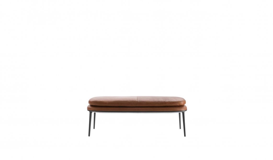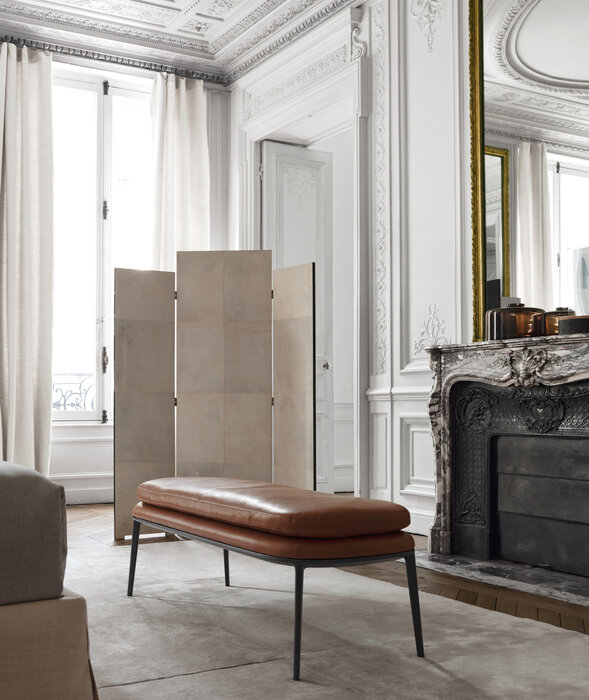 Classic yet contemporary, the Caratos bench is a versatile piece of furniture matching sofas and chairs in the living area, but also fitting discreetly into the sleeping area. The bench echoes the typical base of the Caratos collection, an iconic die-cast aluminium frame available in various finishes, to be combined with a fabric or leather seat cover. The latter, in particular, enhances the sophisticated nature of the bench, giving it a “saddlery” look.