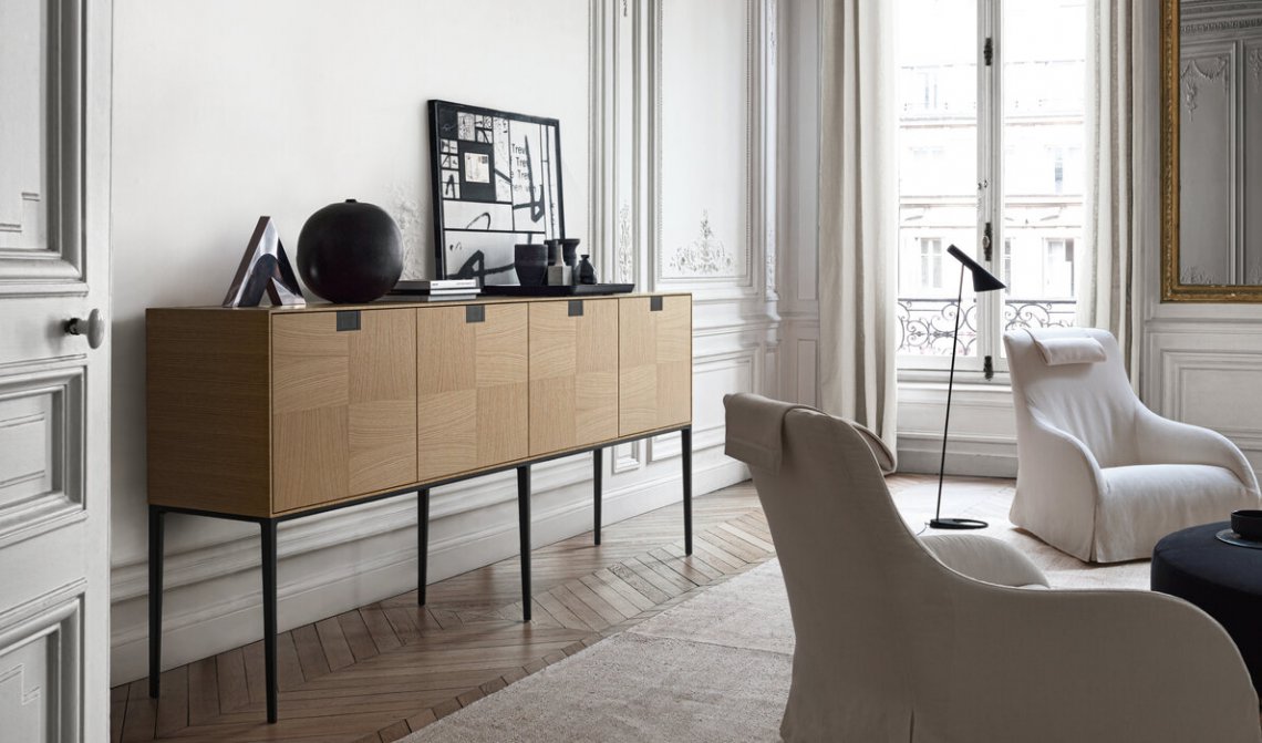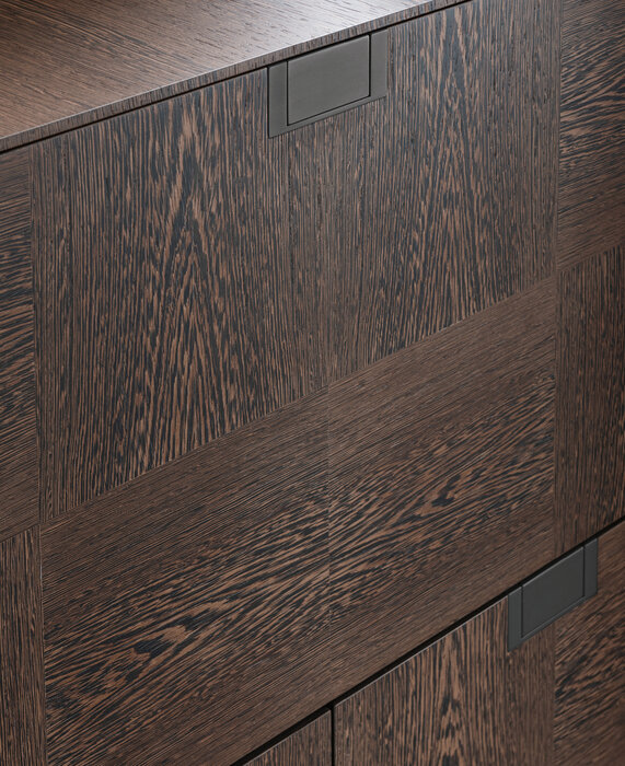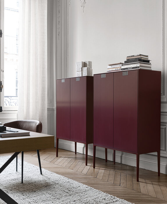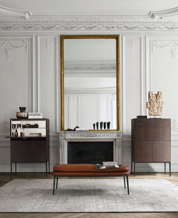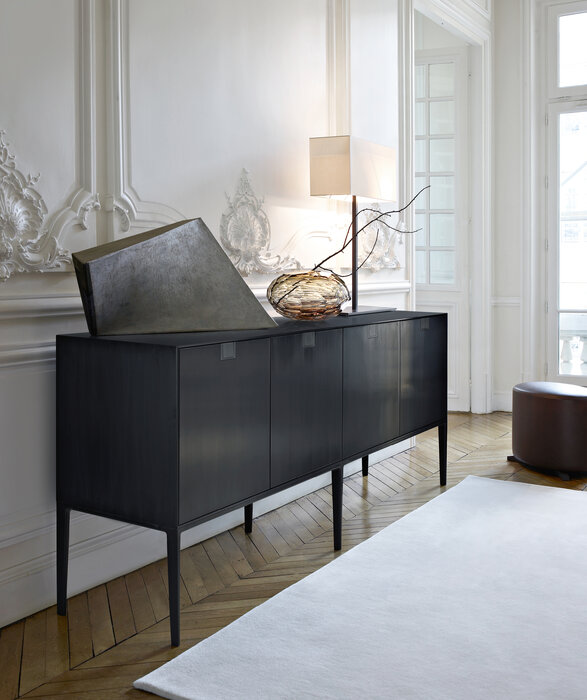 Alcor is a family of cabinets, sideboards and consoles marked by rigorous aesthetic paired with precious wood surfaces, expression of the excellence of Maxalto’s artisan processes. Offered in different configurations, dimensions and heights, with hinged and flap doors, drawers and open compartments, these pieces have an inlaid damier checker board pattern in various woods to choose in the various finishes included in the collection. A further treatment of the surfaces make them special and precious with chromatic variations of shellac. The latter, combined with the coloring, makes you think of the East, but is at the same time an expression of great craftsmanship. The entire series has a visually