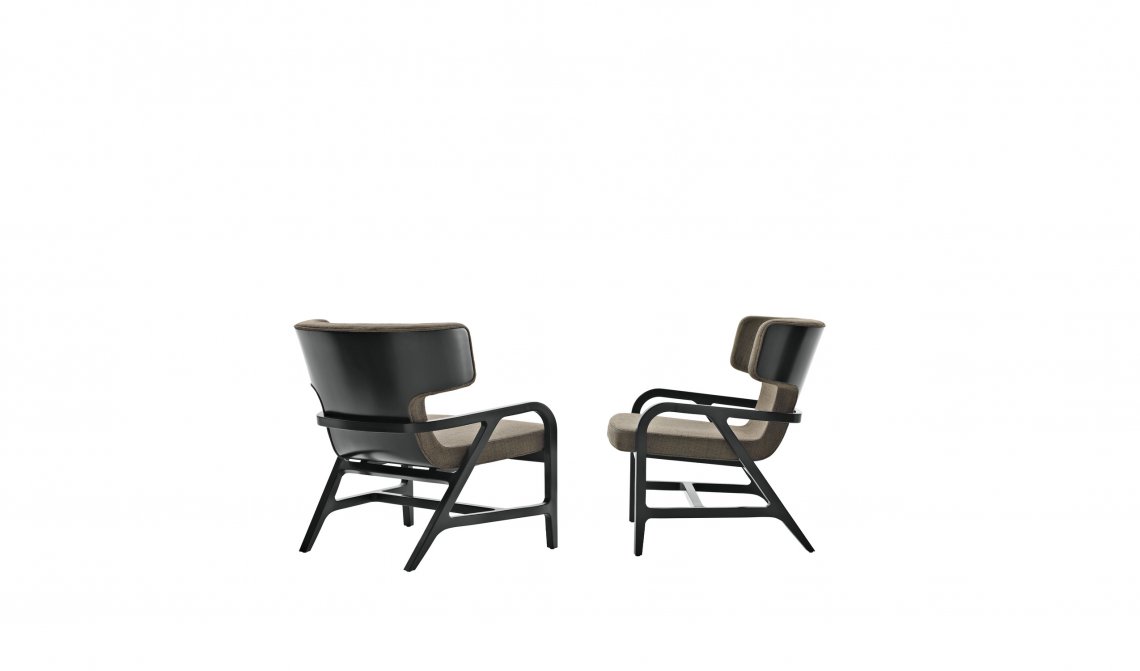 pieces without oriental overtones, confirmed by the silky hand of the wood. The seat-back shell, externally