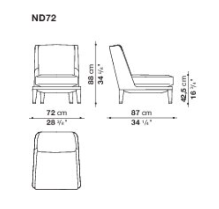 The Nidus armchairs, like the curved sofa of the same series, are designed as elements to be grouped in a free, casual manner, fostering socialisation and conversation in a harmonious and relaxed setting. They come in three fabric or leather covered versions that incorporate the feet, with a small metal detail at the base serving as a decorative feature that also offers protection from impact. For utmost comfort, the version with the highest backrest comes with a removable headrest.