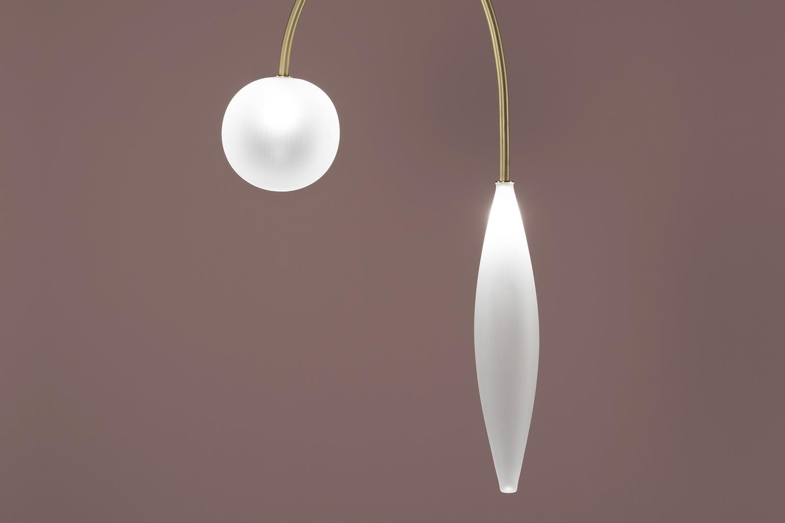 Suspension lamp. Hand blown titanium metallized glass dome with internal frosted bubble glass sculpture.