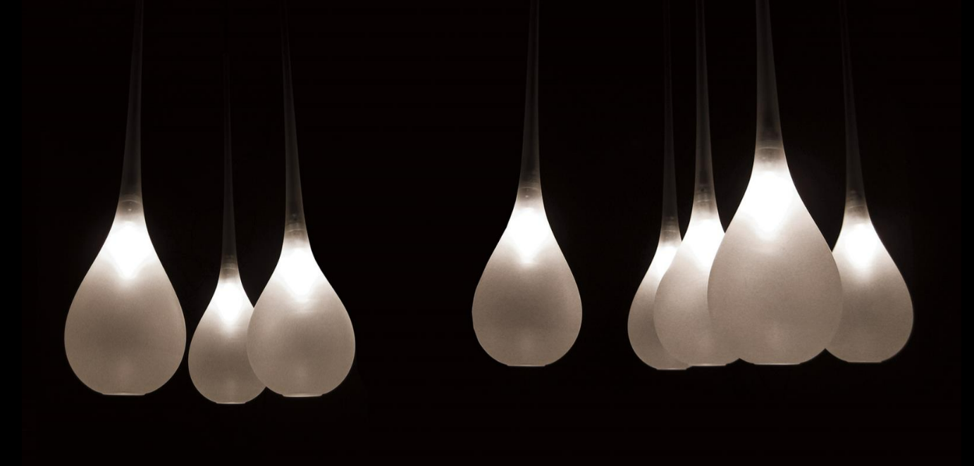 Suspension lamp. Hand blown titanium metallized glass dome with internal frosted bubble glass sculpture.