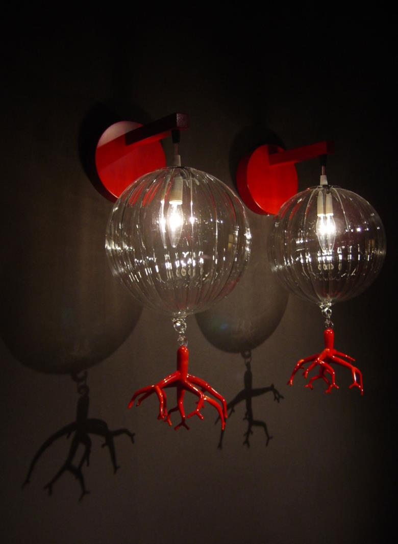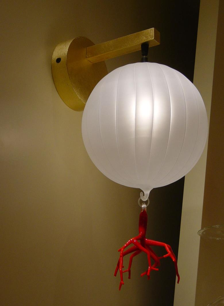 Suspension lamp. Hand blown titanium metallized glass dome with internal frosted bubble glass sculpture.