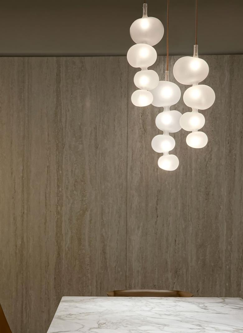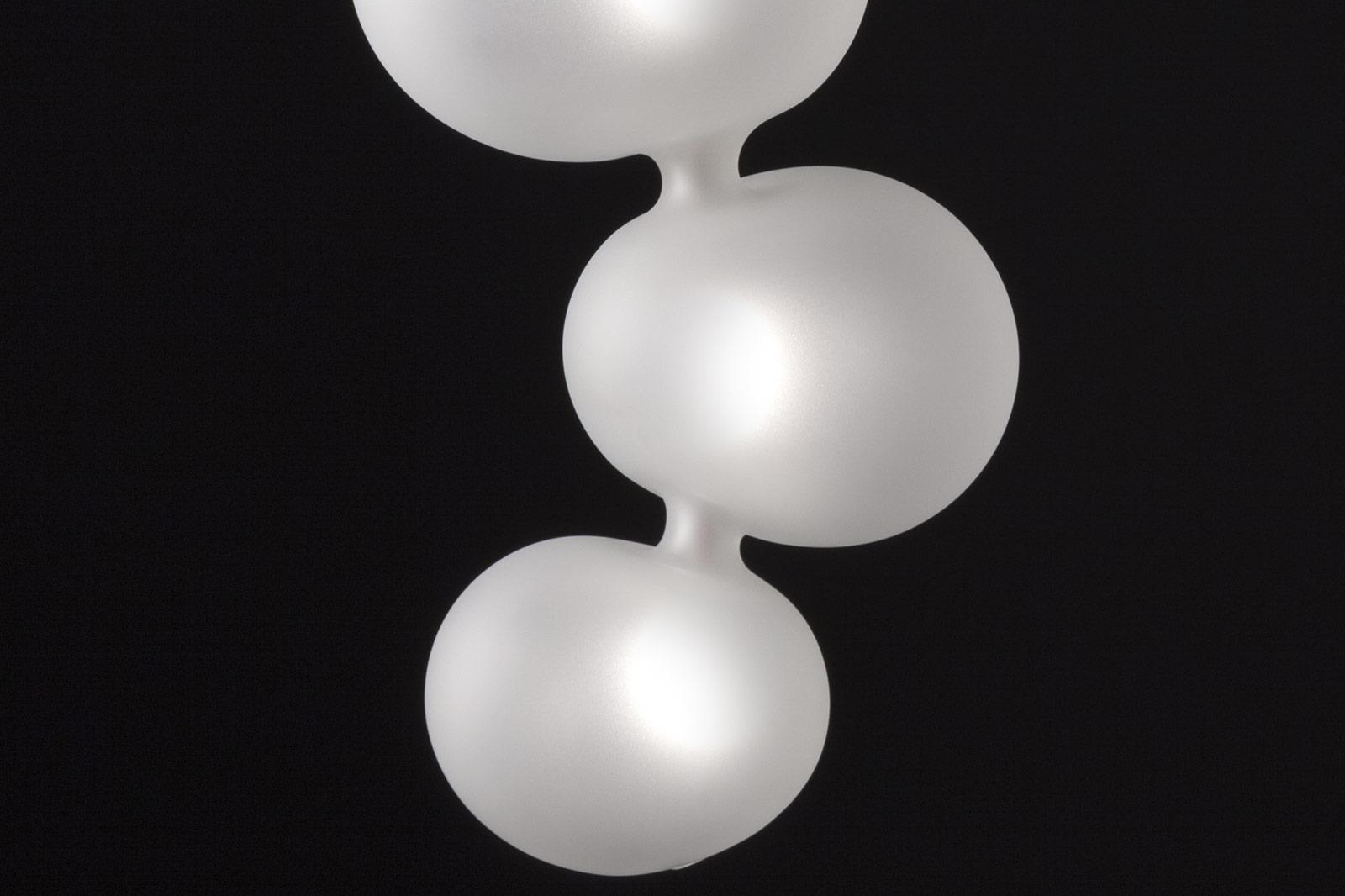 Suspension lamp. Hand blown titanium metallized glass dome with internal frosted bubble glass sculpture.
