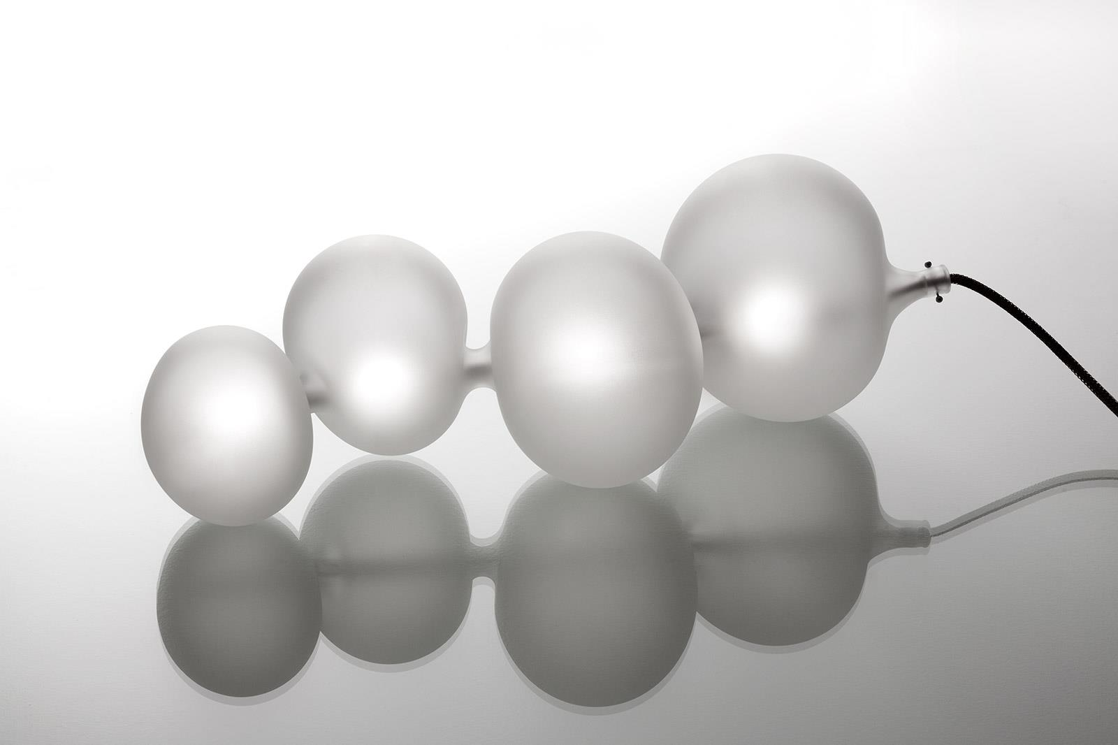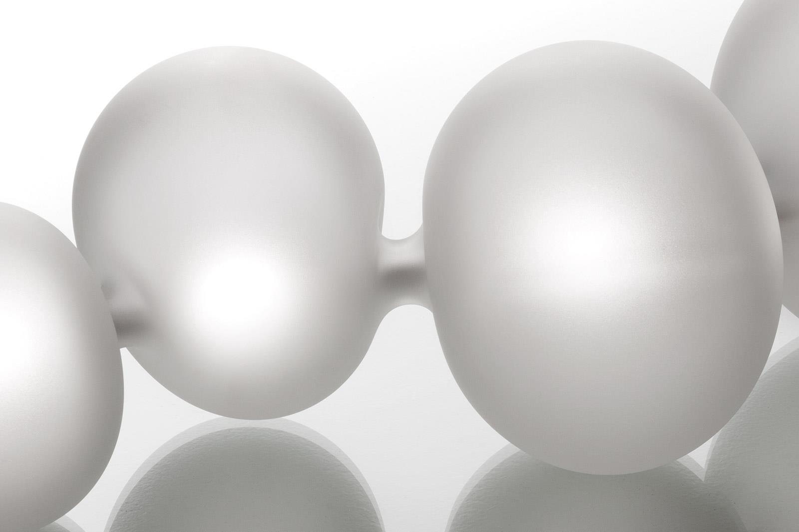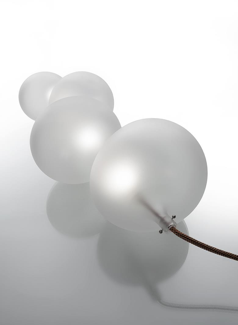 Suspension lamp. Hand blown titanium metallized glass dome with internal frosted bubble glass sculpture.