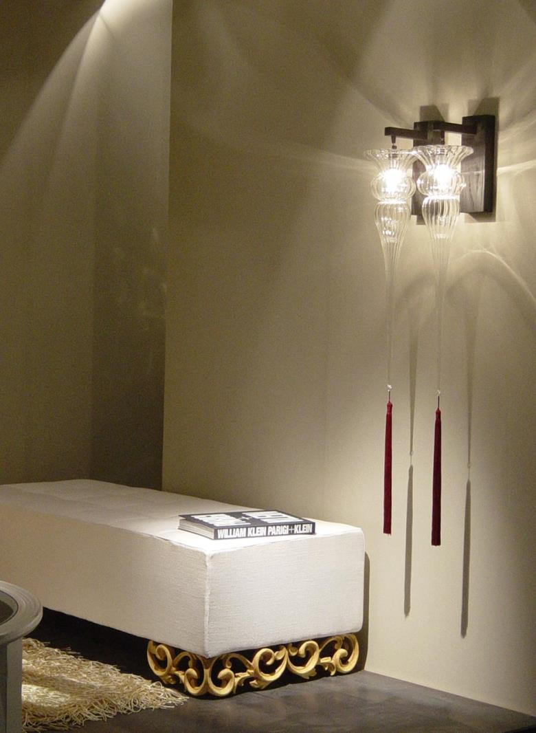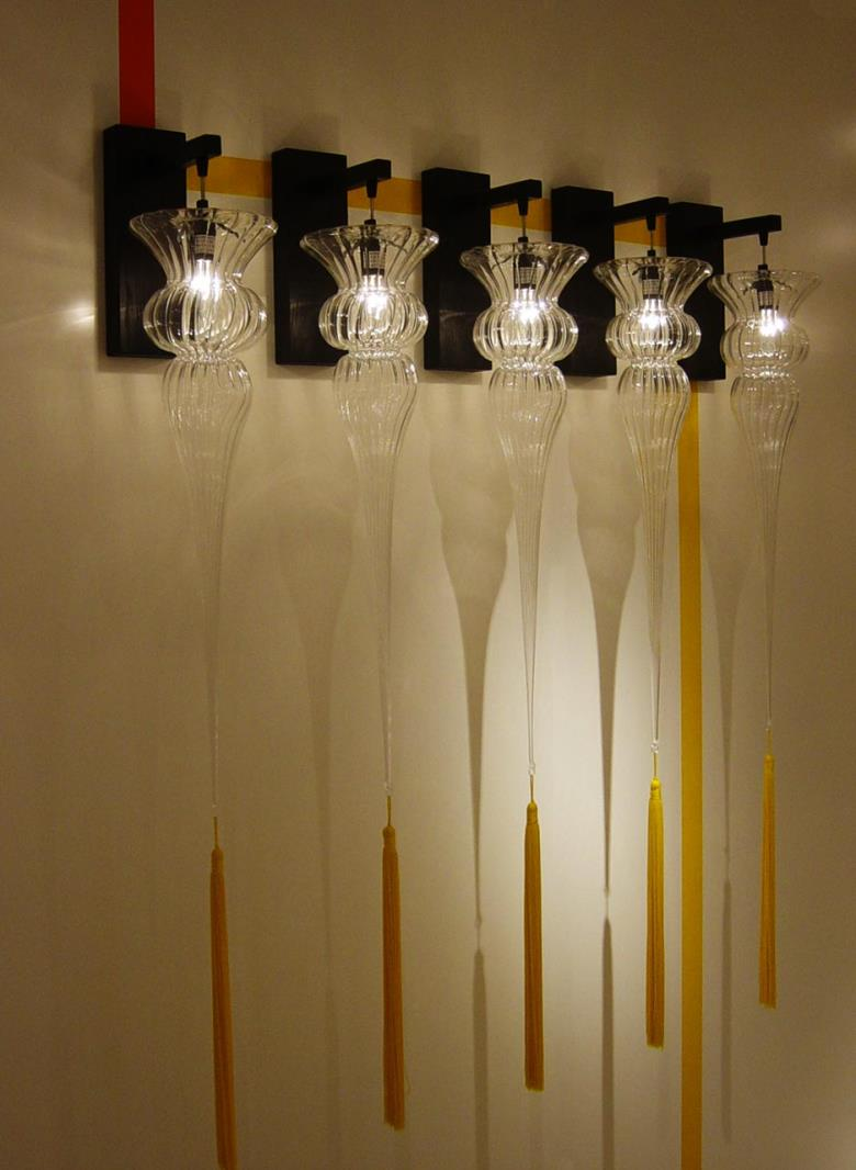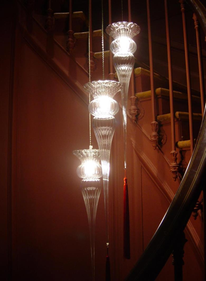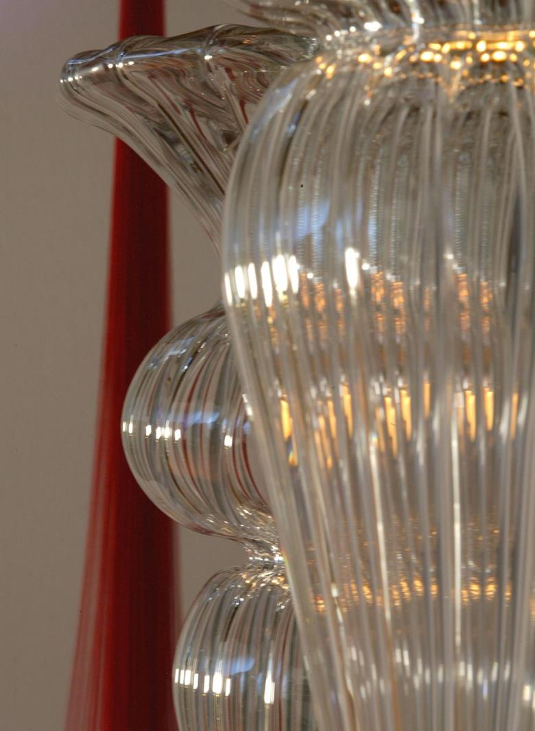 Suspension lamp. Hand blown titanium metallized glass dome with internal frosted bubble glass sculpture.