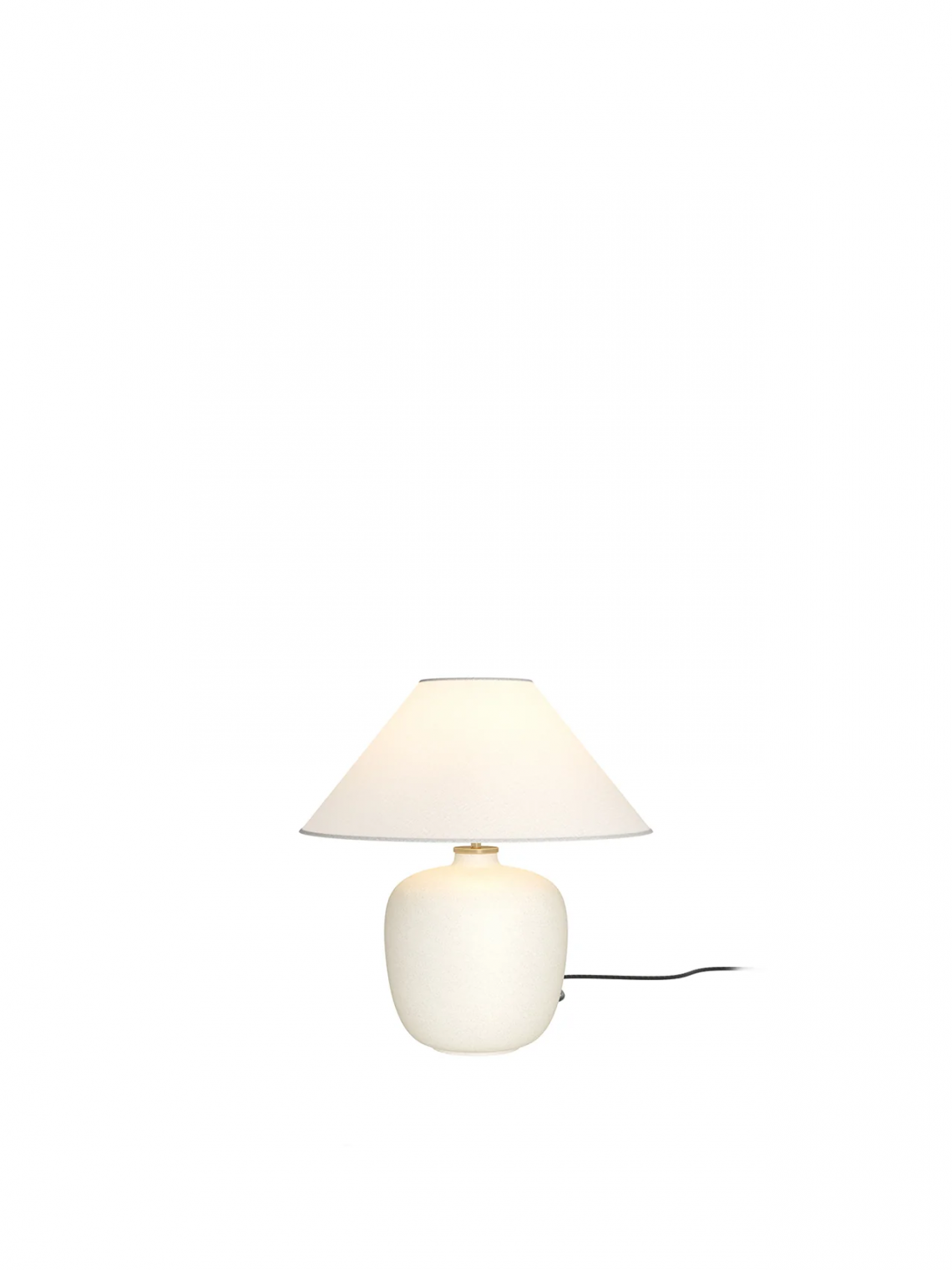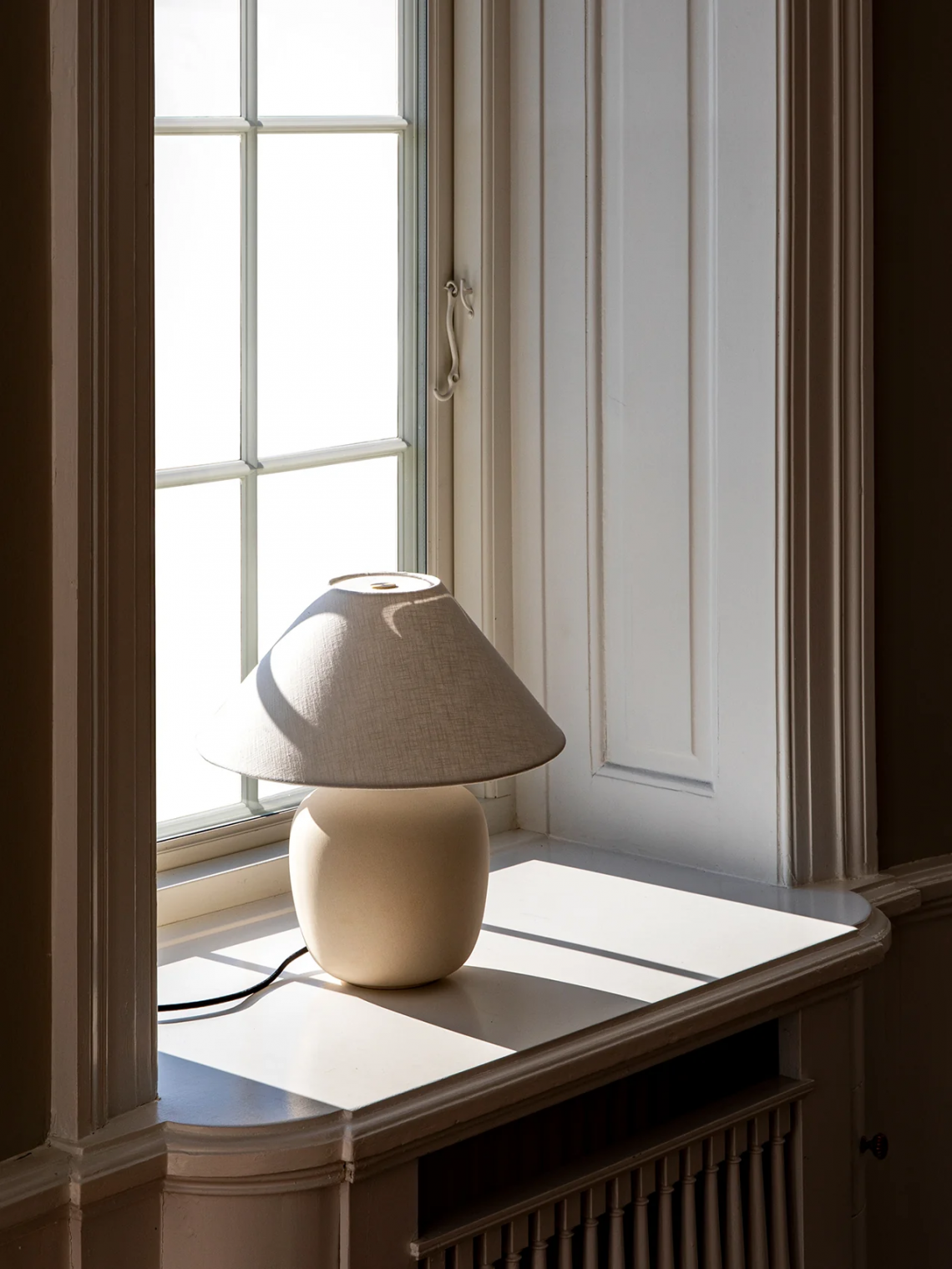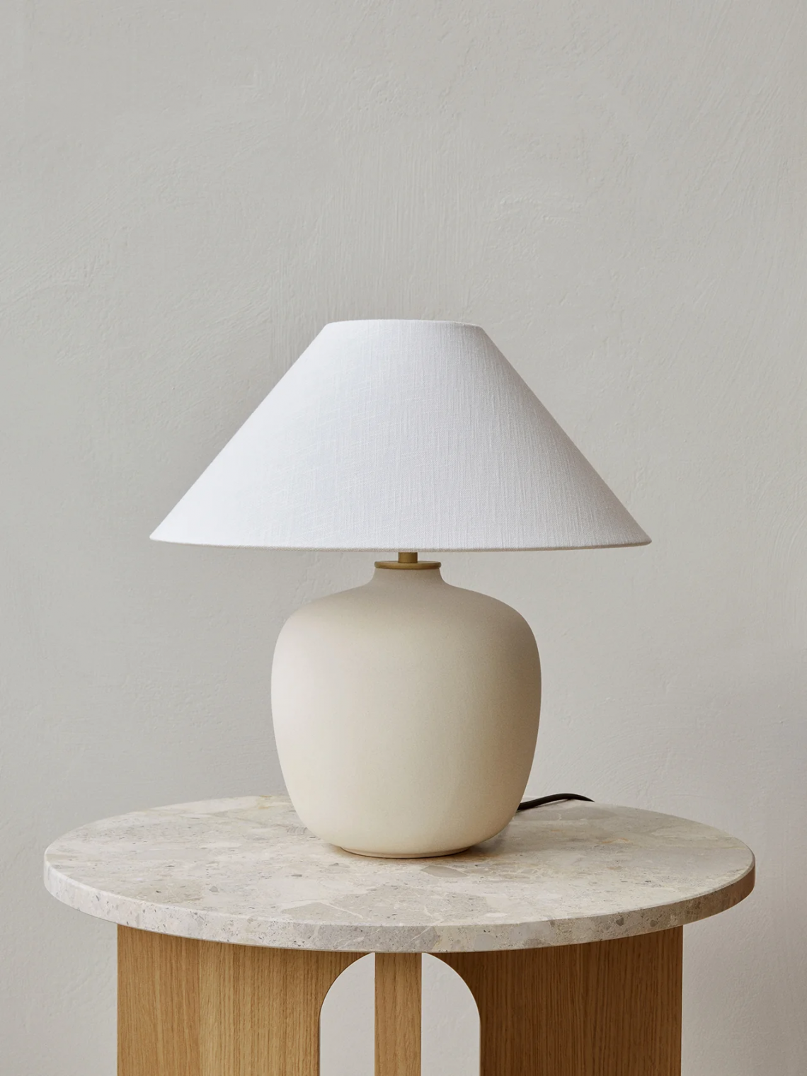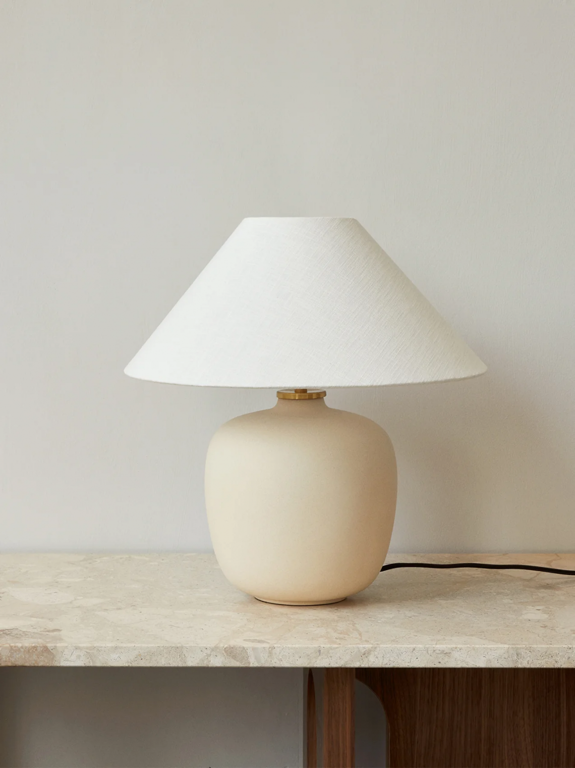 Taking its design cues from childhood homes filled with treasures shaped by the human hand, the Torso Table Lamp by Kr?yer-S?tter-Lassen is a modern lamp with a timeless look. Uniting raw stoneware with ethereal linen and functional metal details, the portly base, tactile shade and brass touch dimmer create the perfect balance between hard and soft, beauty and purpose.