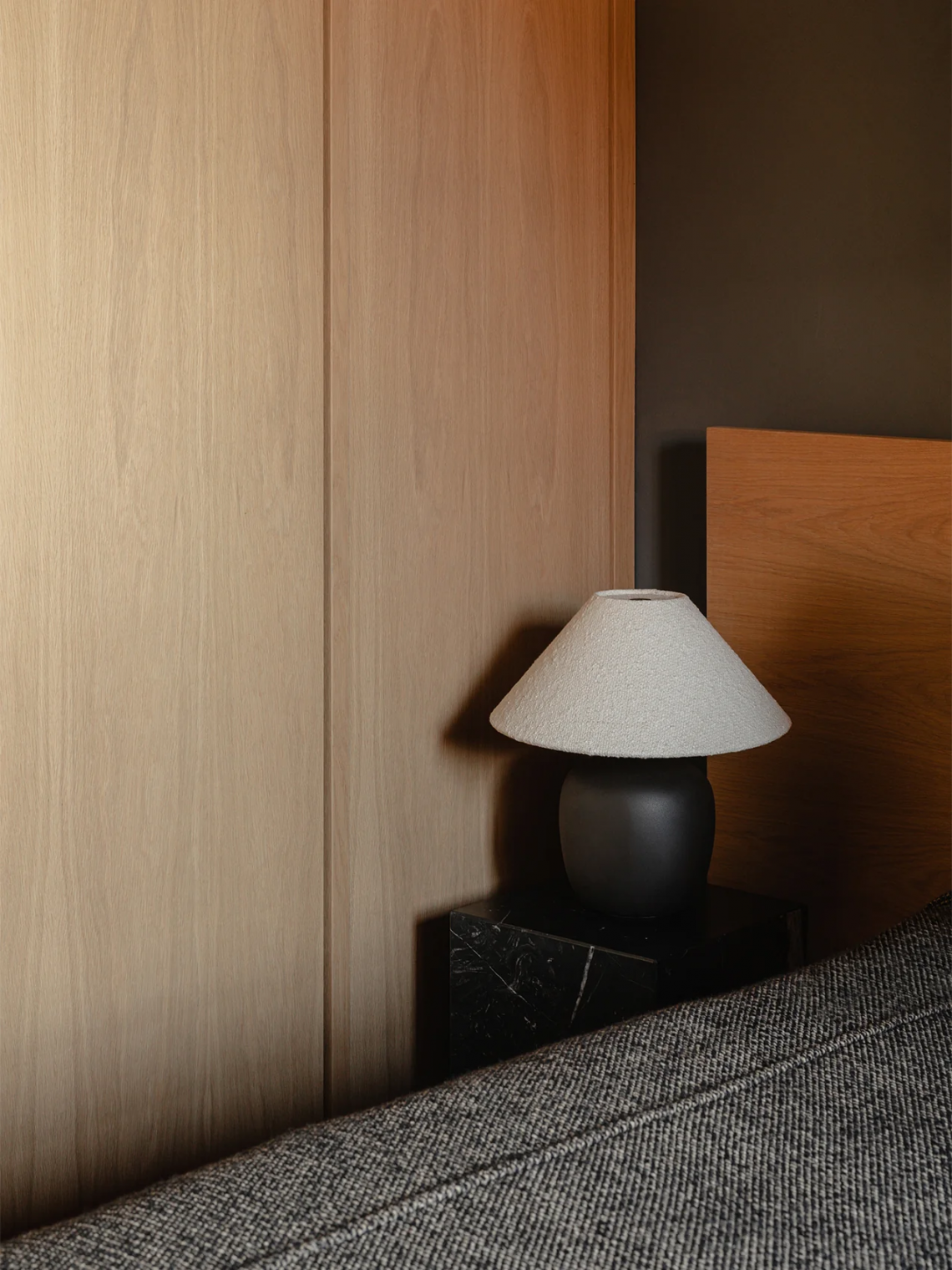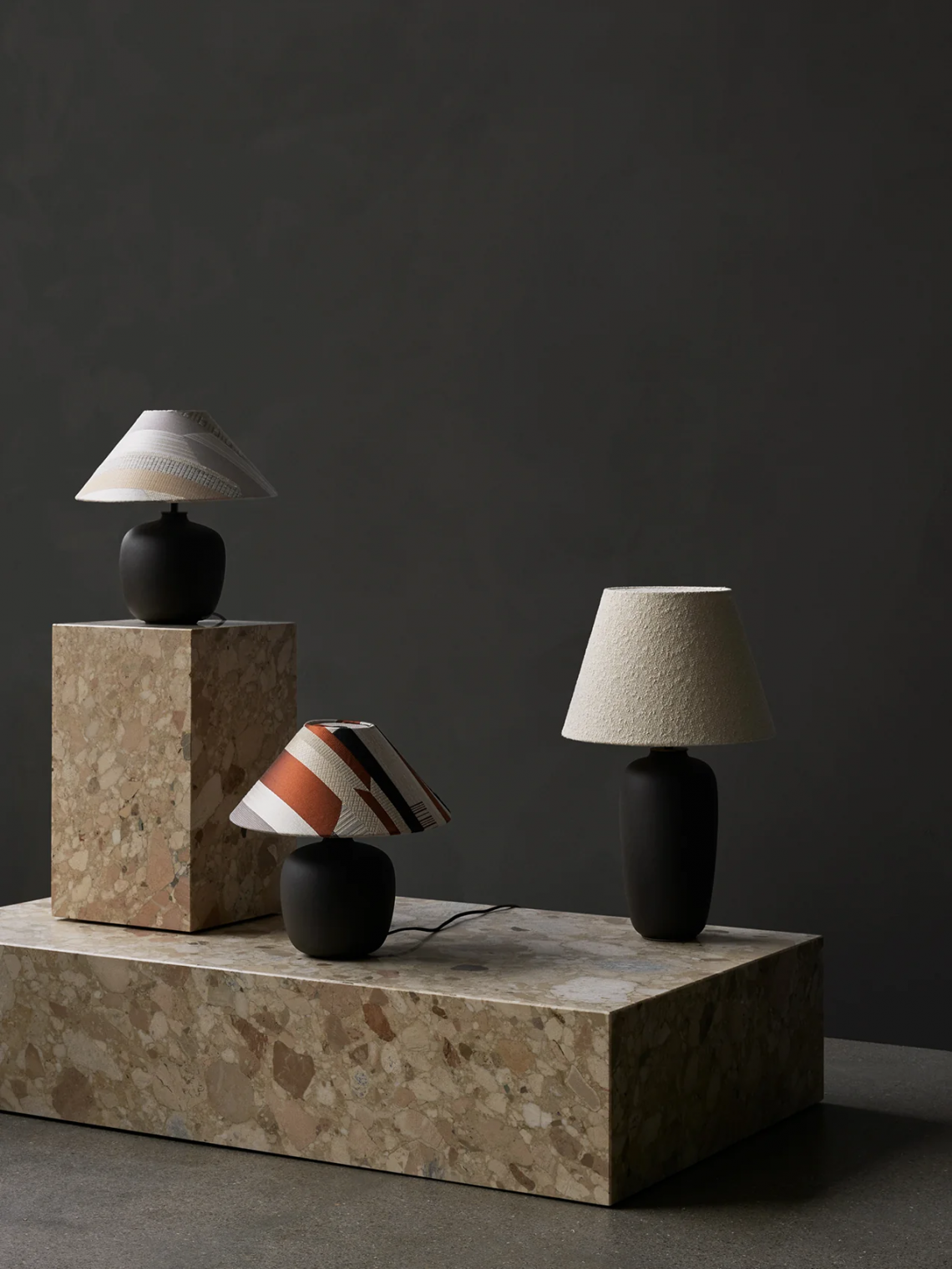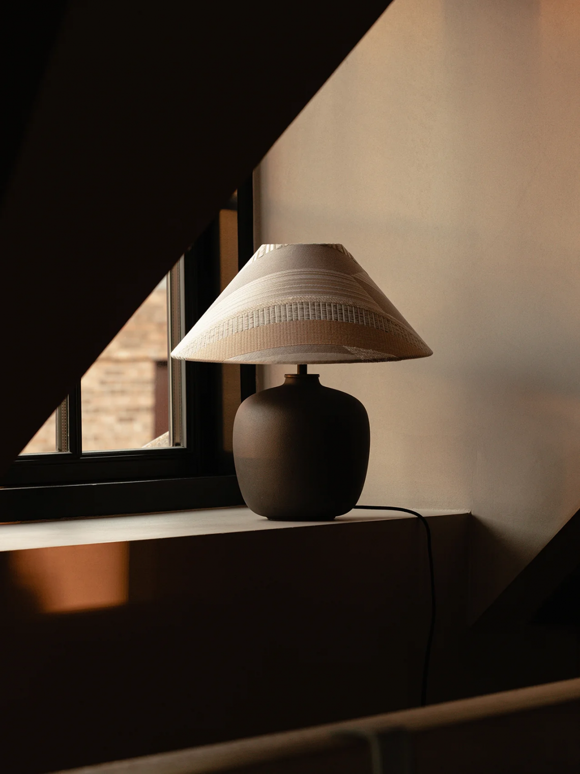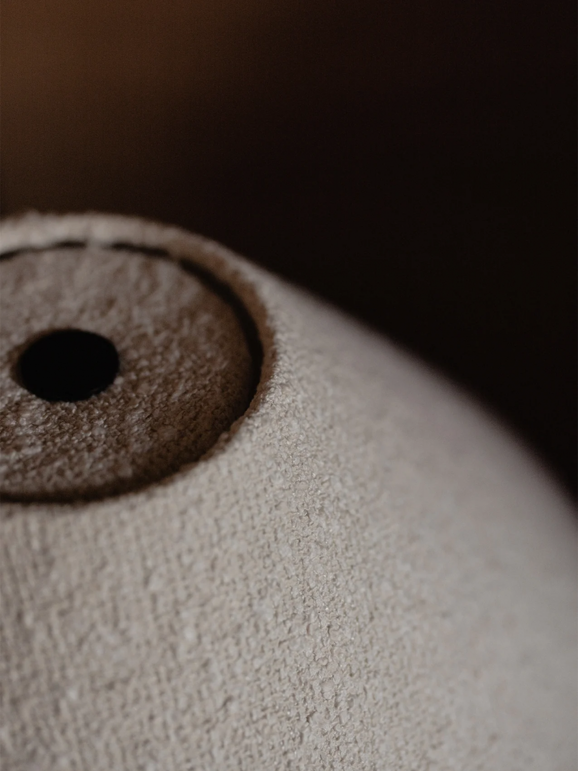The exclusive, limited edition of the Torso Table Lamp is swathed in tactile fabric by the Milanese textile house, Dedar. Inspired by the atmosphere at The Audo, MENU’s Copenhagen home and hub for creativity and collaboration, the textured ceramic lamp features an integrated brass dimmer that adjusts the light at the tap of a finger. The addition of the luxurious fabric shade makes it a functional work of art.