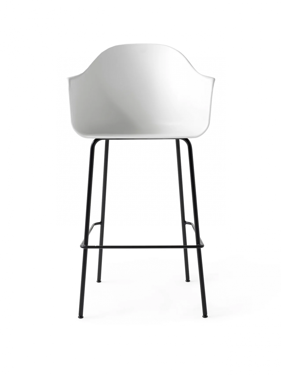 Whether you love to eat, work and hang out at the countertop bar, or prefer the elevation of the high top, the new bar and counter versions invite you to pull right up. The slender and sculptural geometric bases are designed with a comfy crossbar for the feet at just the right height to prolong comfort and keep your posture in top form. The bases are available in black powder coated steel. MENU offers various Harbour counter/bar Chair variants available for expedited delivery.