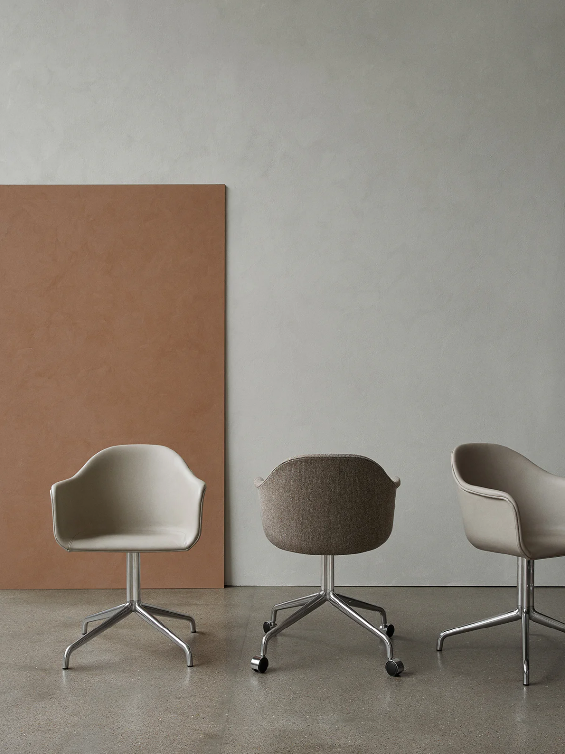 Once you’ve chosen the Harbour Chair shell style that will be cradling and supporting your body, you can now also choose a clover-shaped swivel base so you can spin around as needed – and roll around as wanted, should you opt for caster wheels. The base is available with either swivel or swivel with return options in two finishes – polished aluminum or powder-coated aluminum in black.