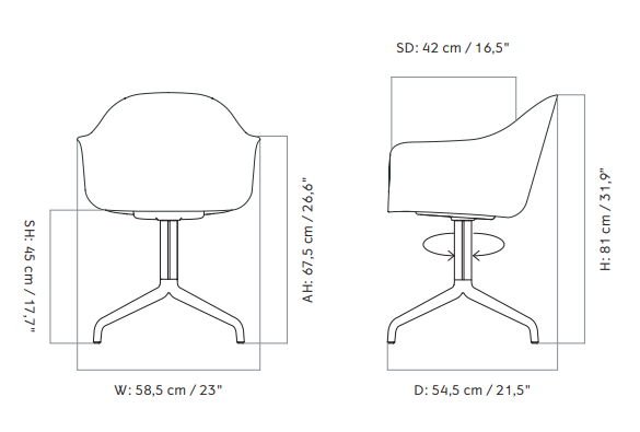 Harbour Chrome Star Base, upholstered餐椅尺寸圖1