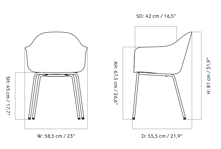 Harbour Steel Base, Plastic餐椅尺寸圖1