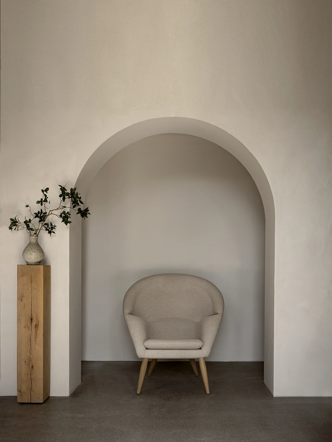 Originally dubbed Model 9, the Oda Chair was an ambitious design from the very beginning. Created by Arnold Madsen in around 1956, the aesthetic reinterpretation of an armchair has a complex horseshoe construction with an integrated headrest and beautifully incorporated armrests in wood.