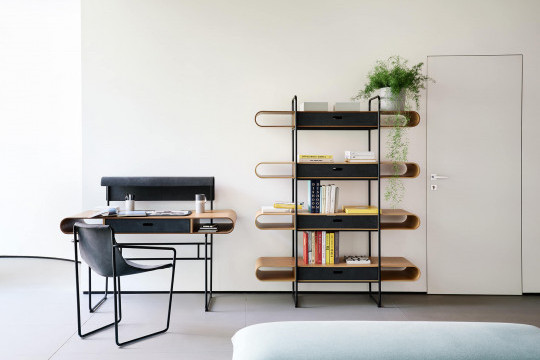 lampshade. The desk is part of the Apelle collection.