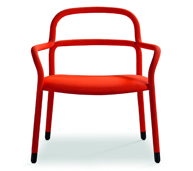 Lounge with a four-leg base completely upholstered in fabric. Steel feet.