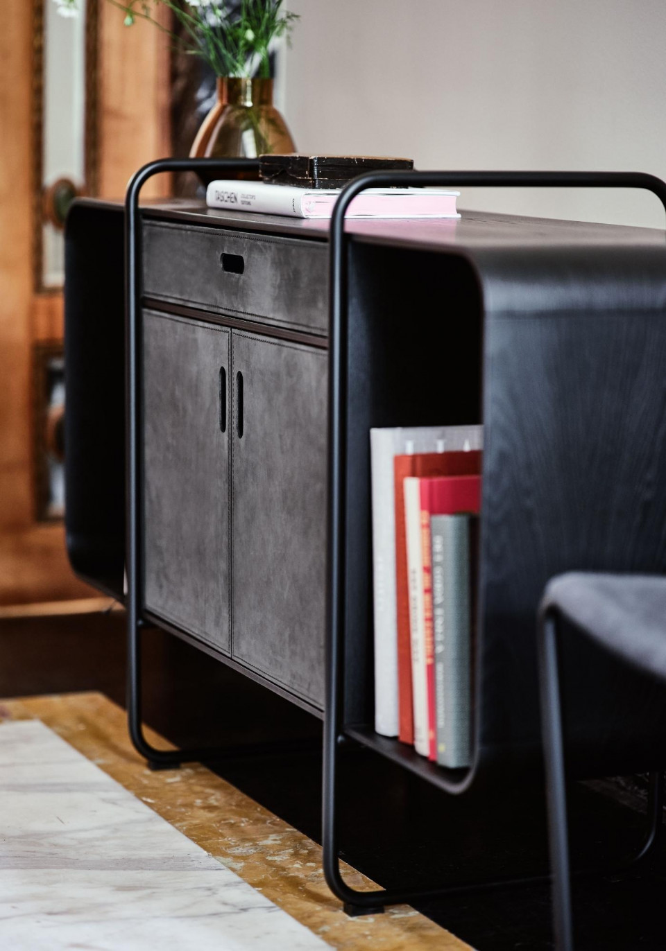 Apelle sideboard with metal base.